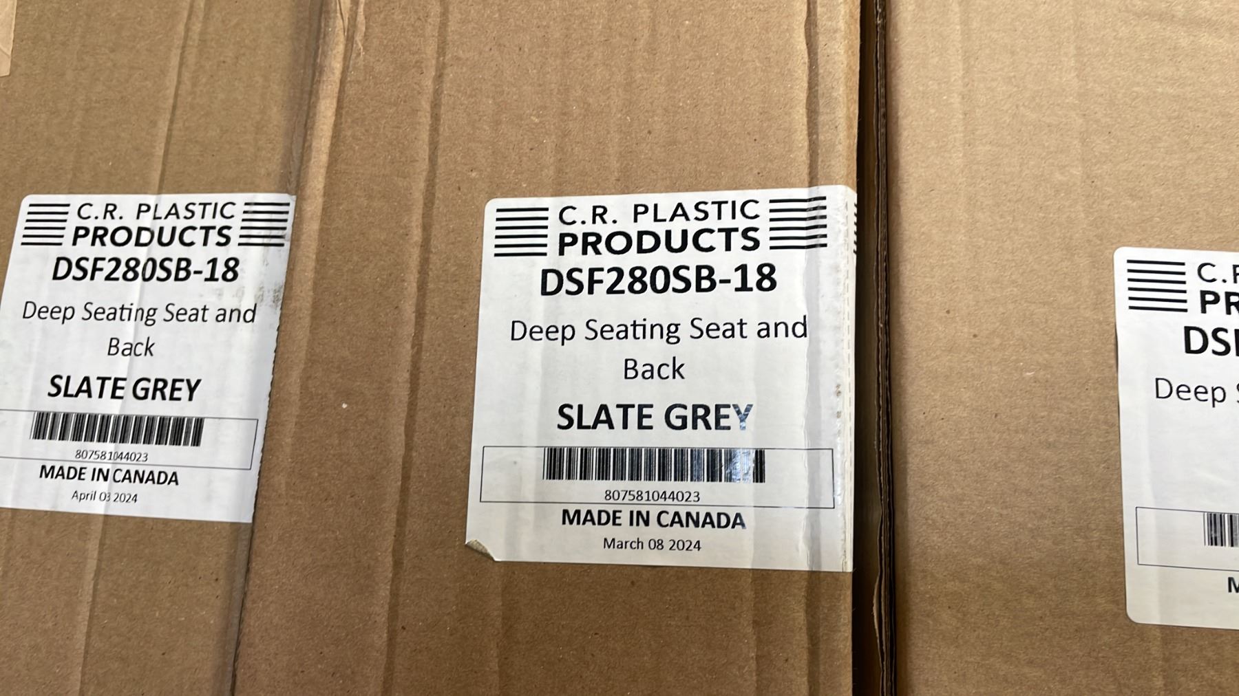 C.R. PLASTIC PRODUCTS MODEL DSF280SB-18. DEEP SEAT & BACK OUTDOOR PATIO CHAIR COLOR SLATE GREY *IN BOX*