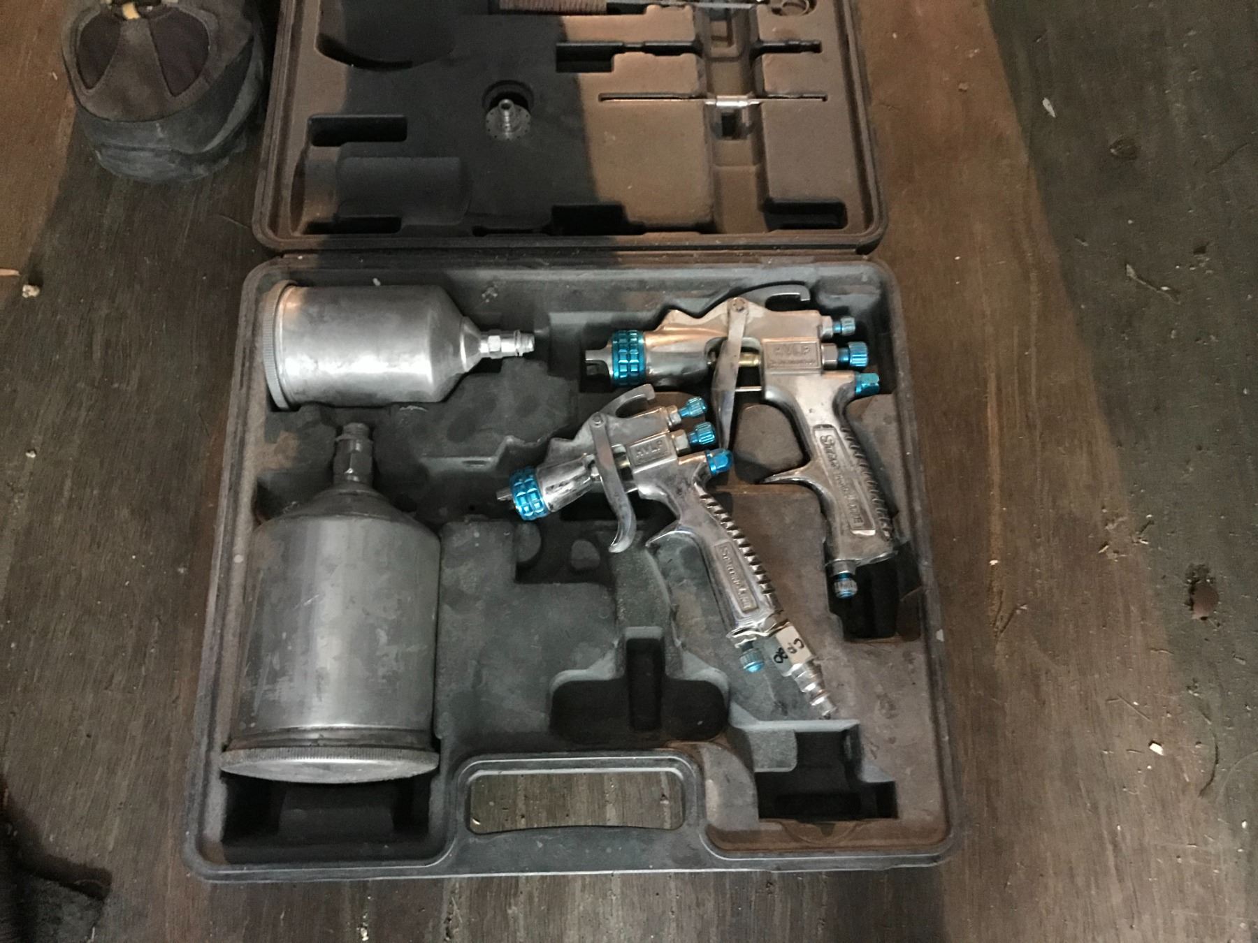 CABINET LOT - POLISHER, SPRAY GUNS, STEAM CLEANER, HVLP SPRAY GUN - CABINET INCLUDED *NANAIMO*