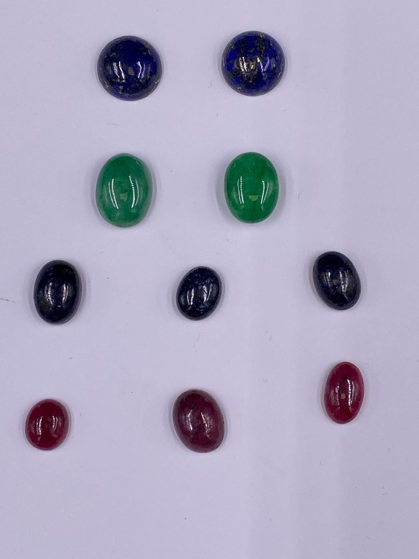 CABOCHONS READY TO BE SET IN JEWELRY; LAPIS LAZULI 17.55CT, RUBY 16.35CT, EMERALD 18.60CT, SAPPHIRE