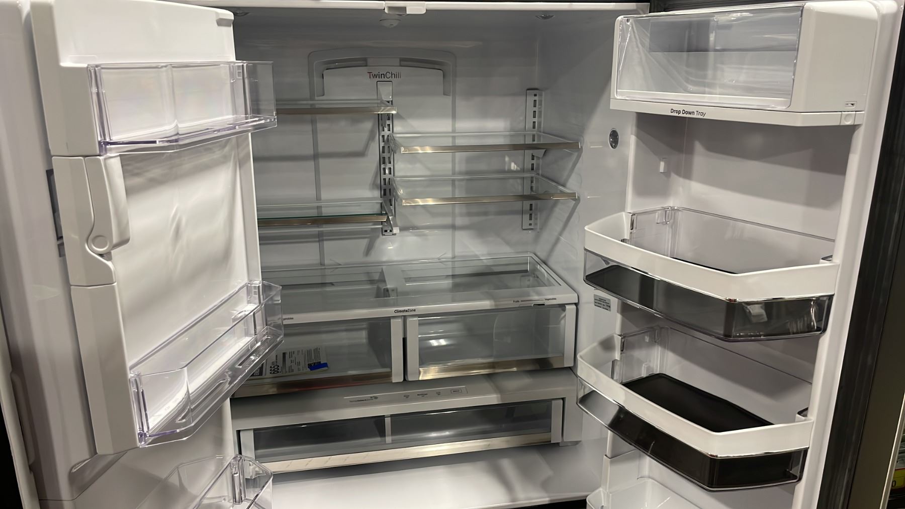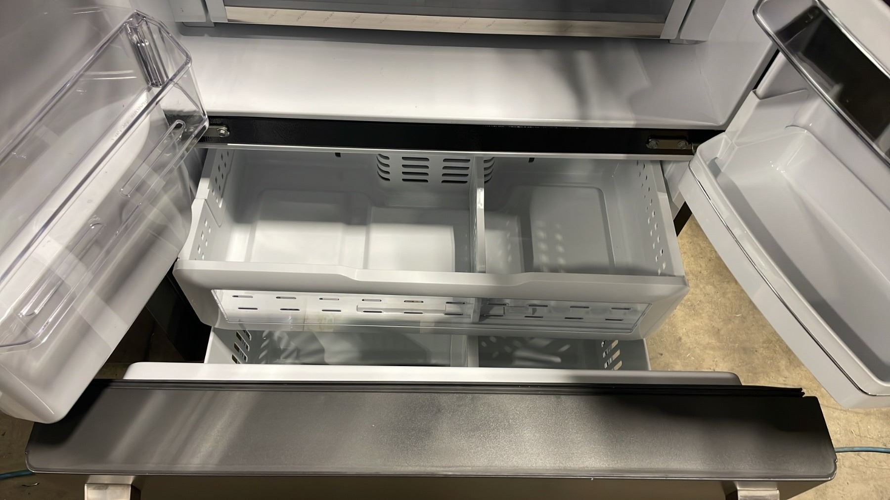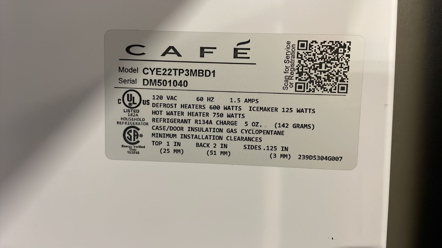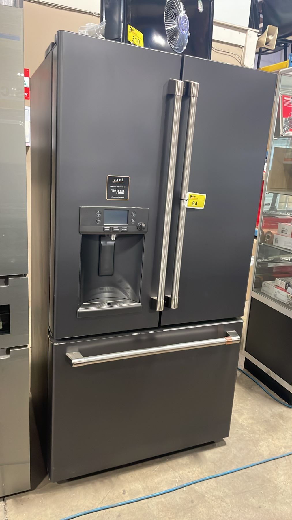 CAFE MODEL CYE22TP3MD1. 36" SMART BRUSHED CHARCOAL FRENCH DOOR BOTTOM FREEZER REFRIGERATOR WITH LED WATER & ICE DISPENSER SN SIDM501040 RETAIL PRICE $11,549.99