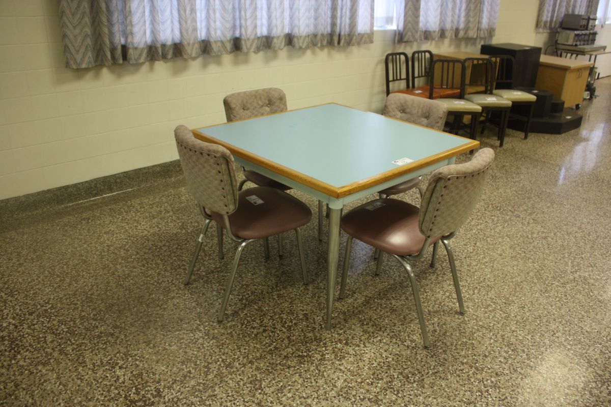 CAFETERIA TABLE WITH 4 PADDED CHAIRS