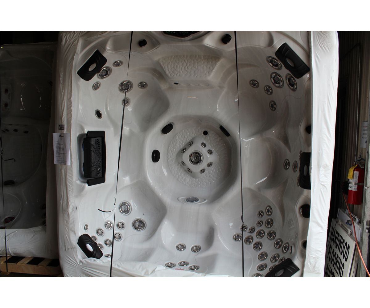 CAL SPA 8' HOT TUB MODEL #L-S13-D860B-13S-000048 8 PERSON BENCH SEATING, STERLING SILVER INTERIOR W/5PILLOWS, MAHOGANY CABINET, 60SS JETS, UV SANITATION SYSTEM, WATERFALL , 2X5HP BHP PUMPS, 9800 5.5KW HEATER RETAIL $15,470.00