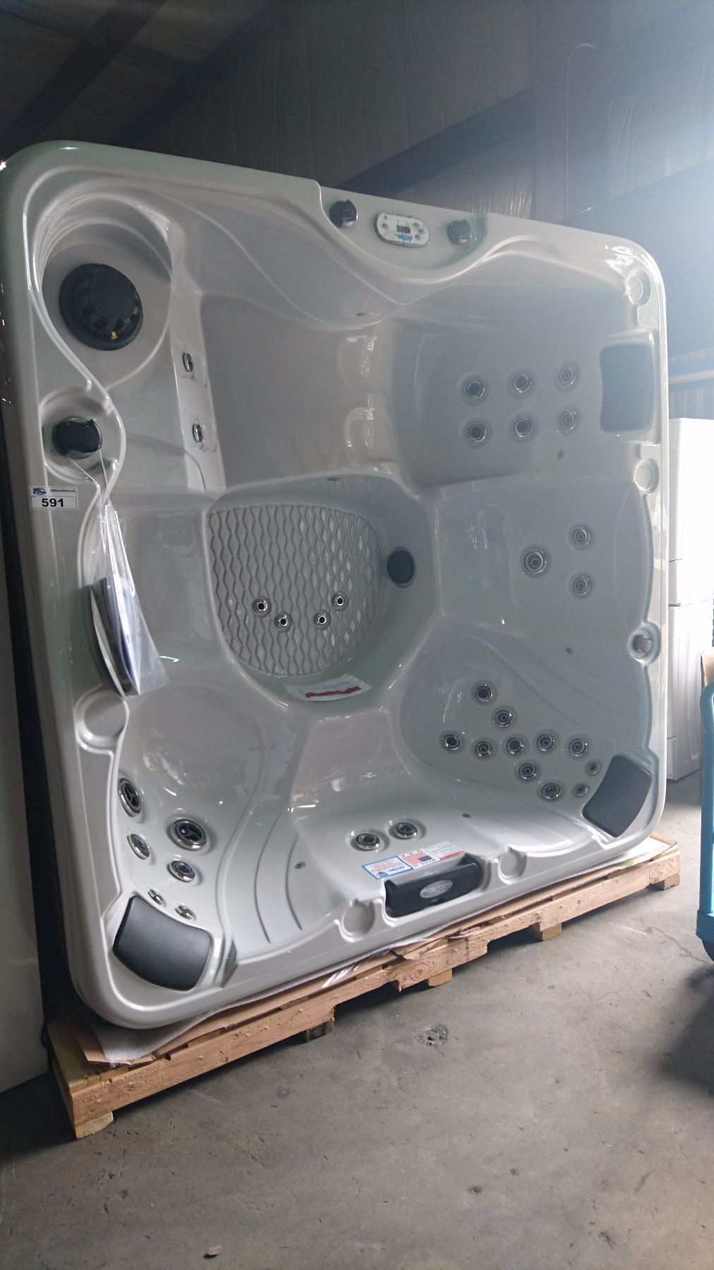 CAL SPA SILVER GREY ACRY 90X90, MIST BASE, 35 JETS, LOUNGER, WATERFALL CASCADE, 5BHP 2SPD 60HZ, 5.0BHP 1SPD, PURE SILK OZONATOR, LED SPA LIGHT, PREMIUM LED LIGHTING PACKAGE, THERMO-SHEILD SIDE PANEL, & THERMO-LAYER FLOOR