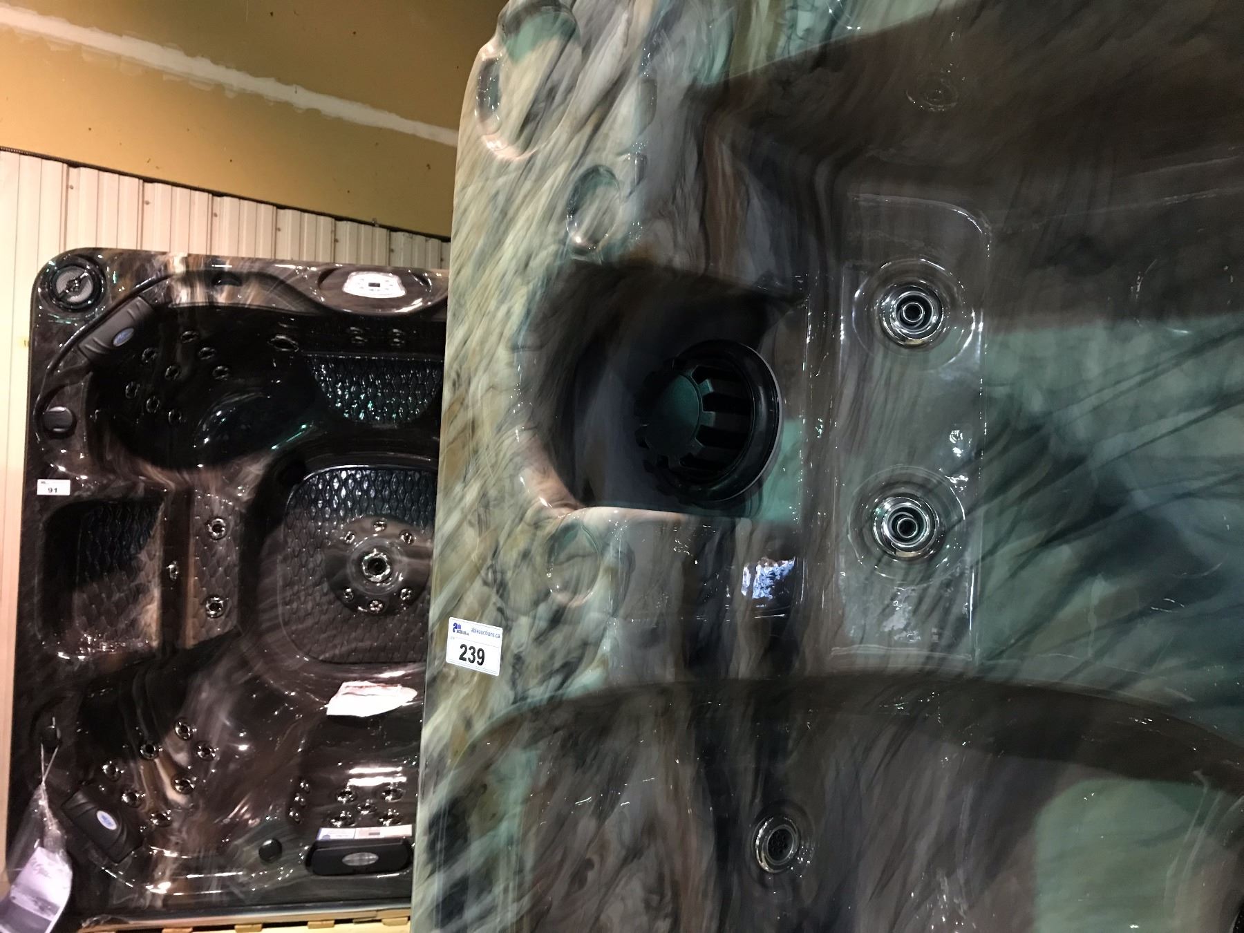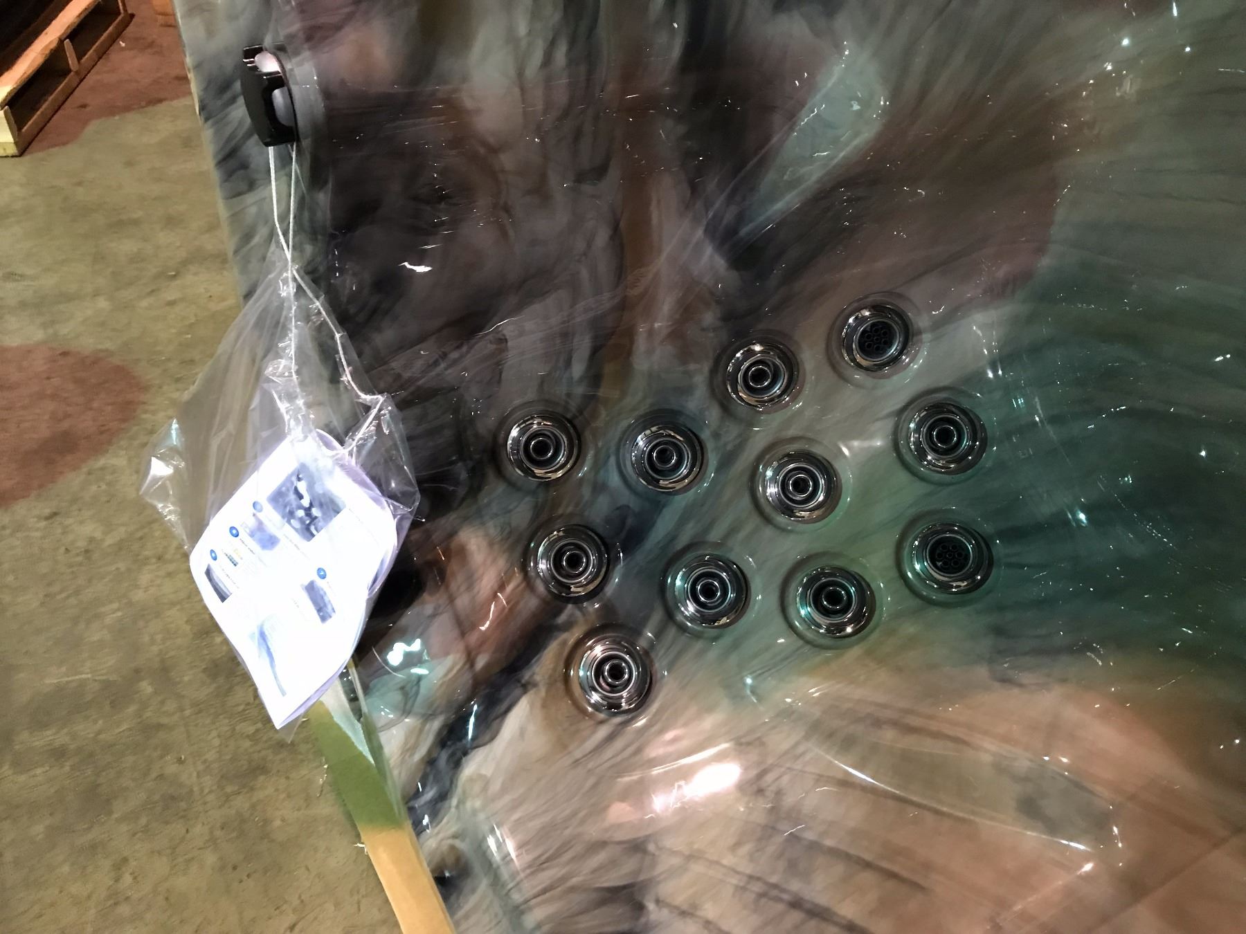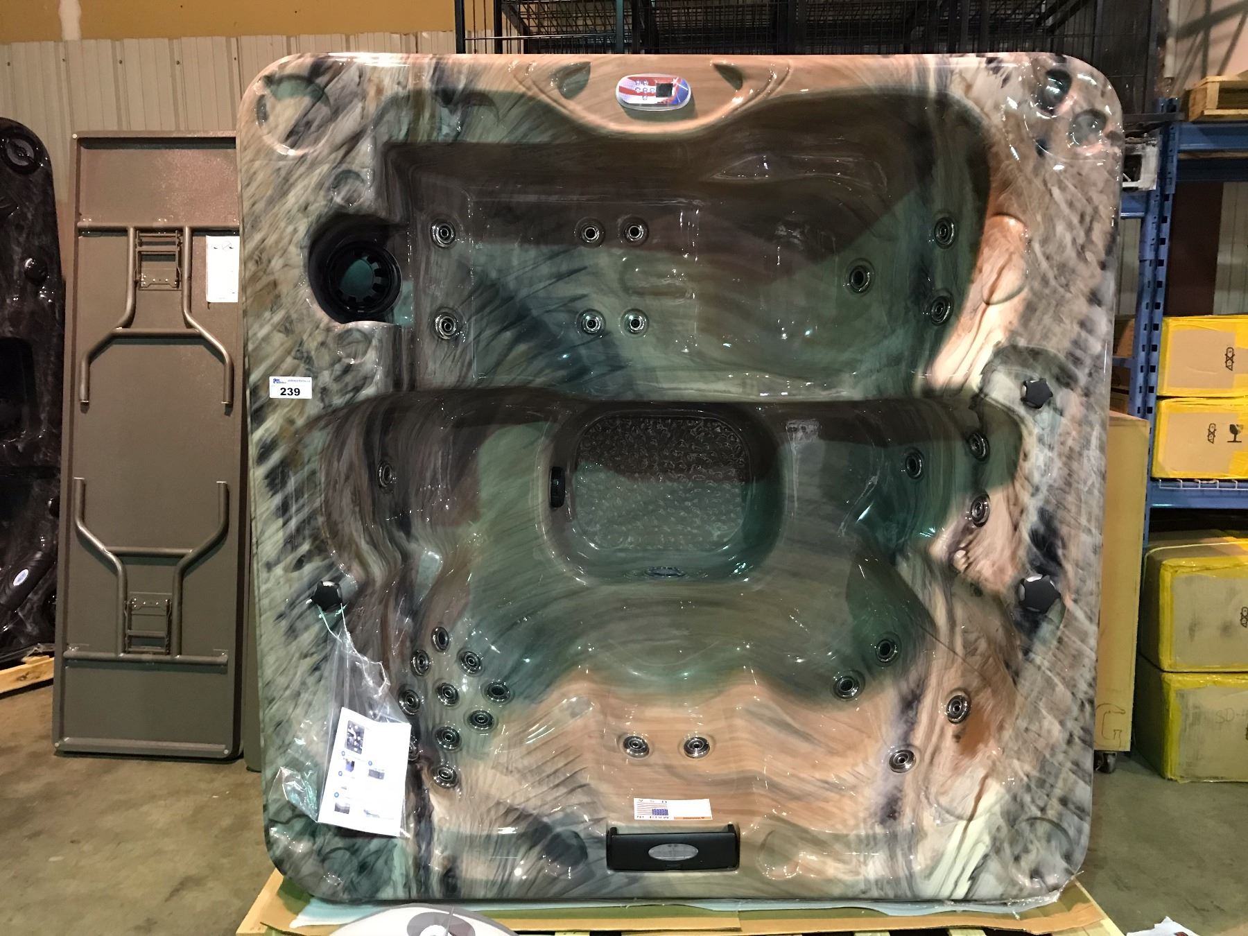 CAL SPA TUSCAN SUN ACRY 90X90, MAHOGANY BASE, 30 STAINLESS STEEL JETS, WATERFALL CASCADE 5BHP 2SPD 60HZ, HYRDO CLEAR OZONATOR LED SPA LIGHT, THERMO LAYER FLOOR