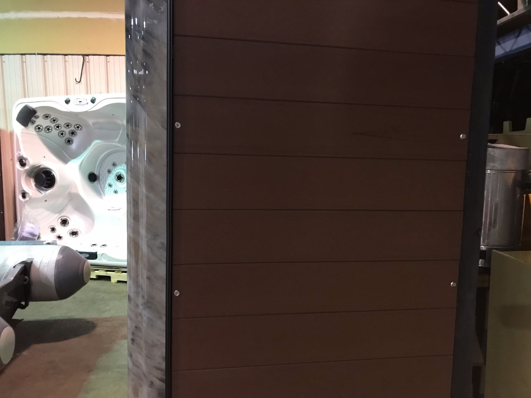 CAL SPA TUSCAN SUN ACRY 90X90, MAHOGANY BASE, 30 STAINLESS STEEL JETS, WATERFALL CASCADE