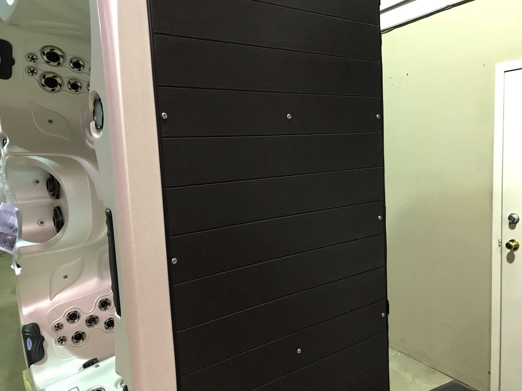 CAL SPAS 8' X 8' PREMIUIM HOT TUB WITH GYPSUM INTERIOR AND SMOKE EXTERIOR. TUB FEATURES: 93 CANDY CANE JETS, 5 PILLOWS, DOUBLE SURFACE SKIMMER, CABINET ACCESABLE DRAIN VALVE, 20" LED CASCADING WATERFALL, 2 LED CUP HOLDERS, 2 X 6 HP PUMPS, ADJUSTABLE THERAPY SYSTEM, HYBRID SANITIZING