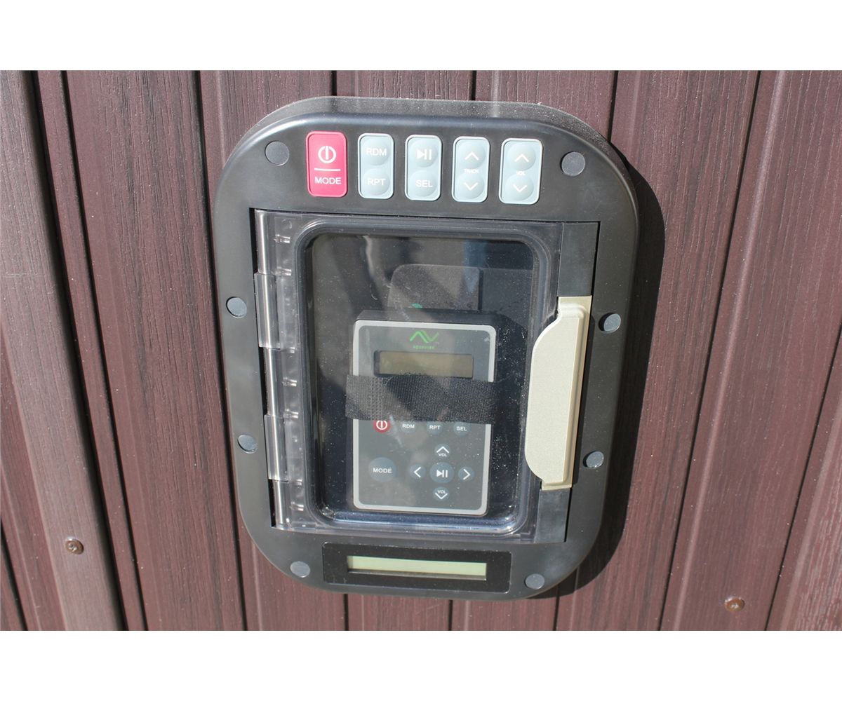 CAL SPAS COLEMAN SERIES HOT TUB WITH SNOW WHITE INTERIOR AND 8' MAHOGANY CABINET. C/W: 66 SS CLEAR RED JETS, DOUBLE LOUNGER, FOOT MASSAGER, FLOOR DRAIN, XIMSOUND STEREO SYSTEM WITH 4" SPEAKERS AND REMOTE CONTROL, 3 X 5.0 HP PUMPS, 3 PORT LED WATER FEATURE HI-LIGHT LED JETS WITH CONTROL VALVES, 24 HOUR FILTRATION, PURE SILK OZONATOR, 3 PILLOWS, AND MORE... S/N 006452