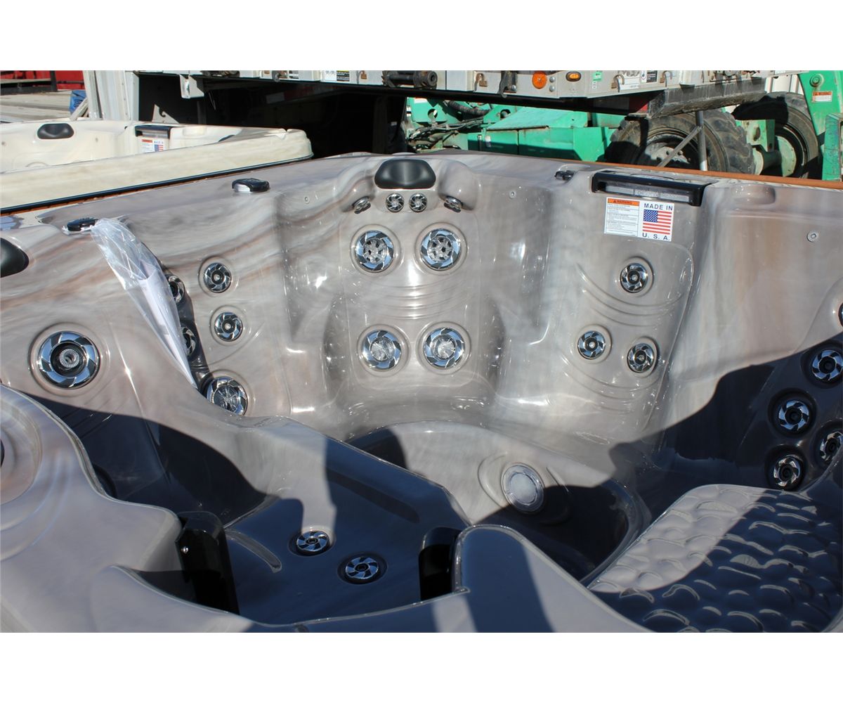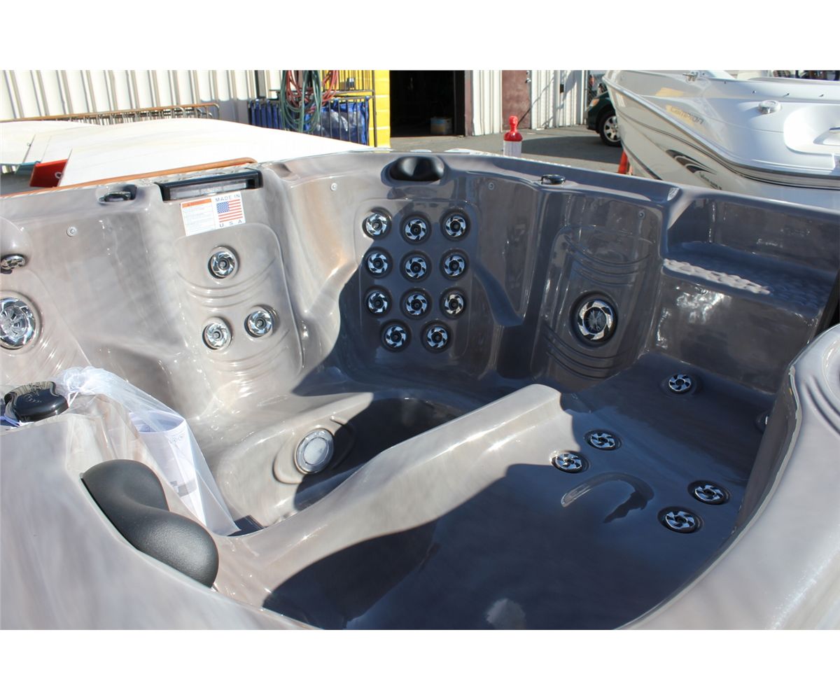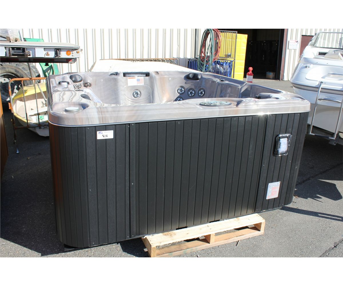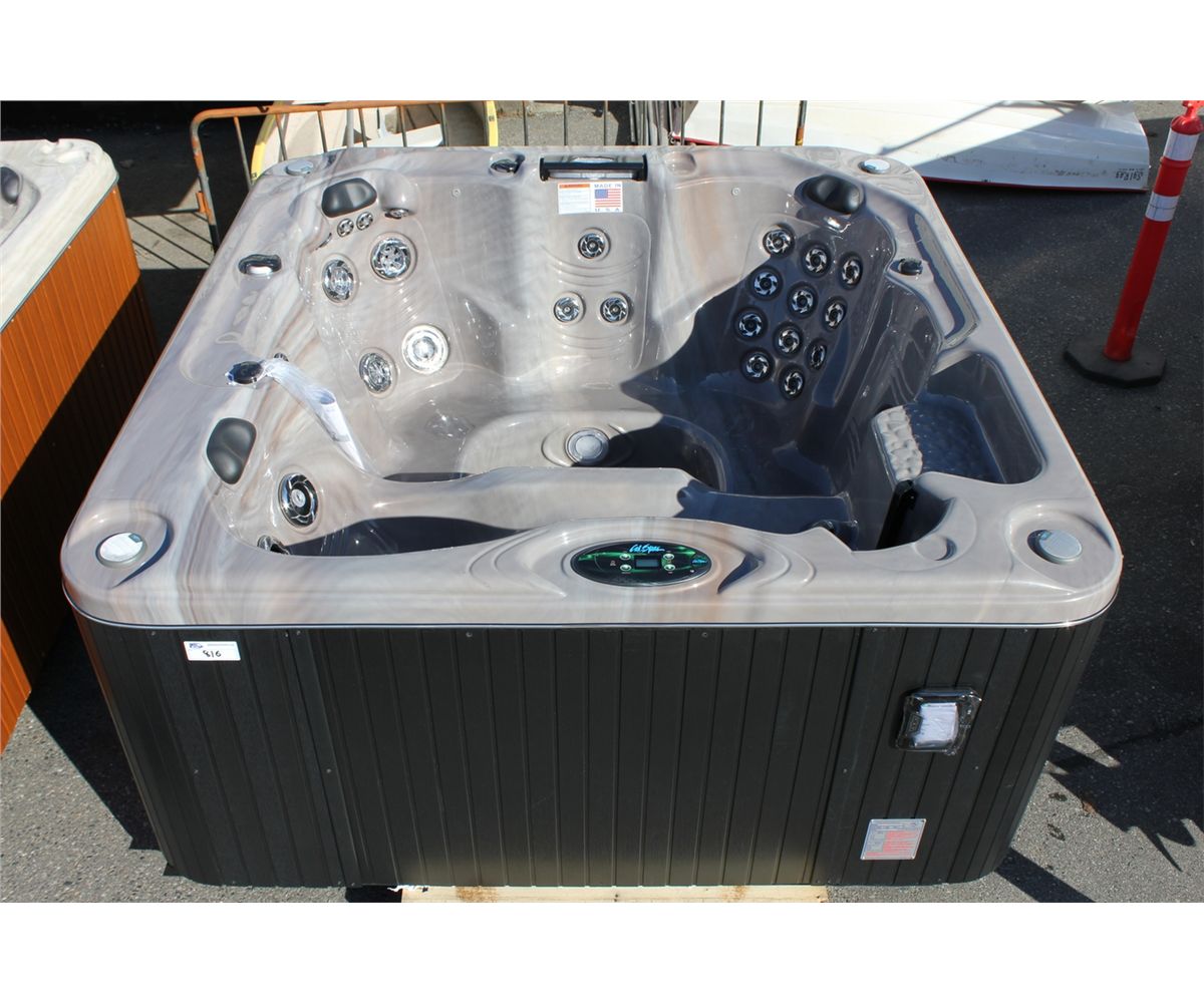 CAL SPAS CONNECT SELECT SERIES HOT TUB WITH NIGHT SAND INTERIOR AND 7' BLACK CABINET. C/W: 41 SS (BLACK) CANDY CANE JETS, ISOUND SYSTEM IPOD DOCK WITH 4 SPEAKERS, WHISPER QUIET 5.5 KW HEATER, 2 X 5 BHP PUMPS, PURE SILK OZONATOR, FOOT MASSAGER, LED SPA LIGHT CONNECT INTERIOR PERIMETER LED LIGHTING, 50 SQ FT FILTER WITH WIER GATE, S/N 006329