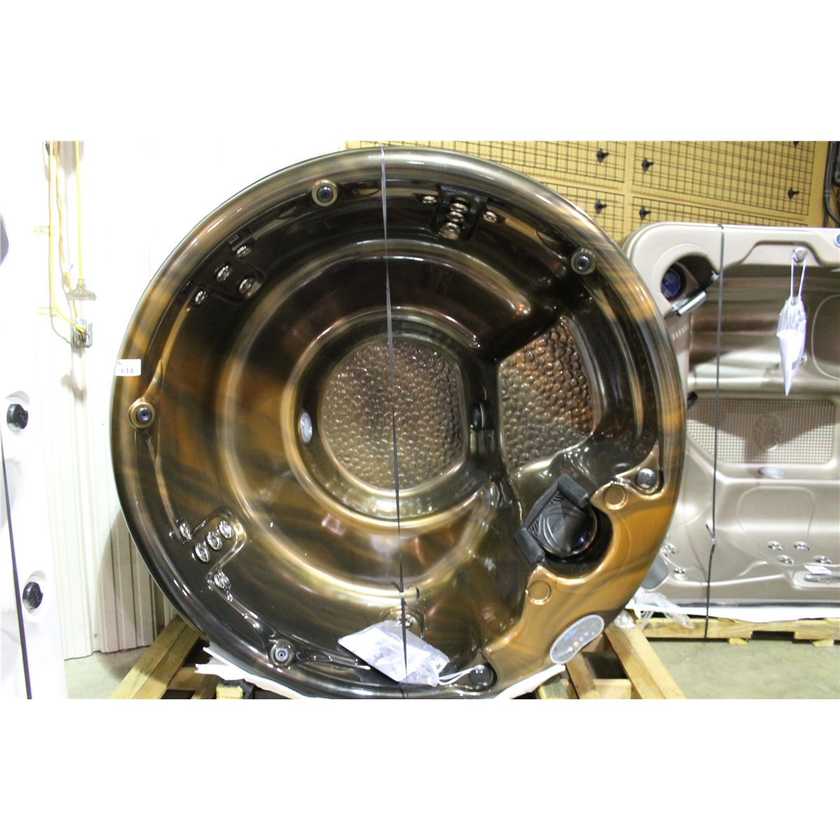 CAL SPAS PATIO SERIES HOT TUB, PREFERRED BLACK CABINET WITH COPPER MATTE INTERIOR C/W 18 SS CANDY CANE JETS, GATE VALVE, 50 SQ FT SURFACE FILTER WITH WEIR GATE, 5.5 KW HEATER, 2 BHP 2 SPEED PUMP, PURE SILK OZONATOR, LED SPA LIGHT, 4 LED HYDRO-STREAMERS WI