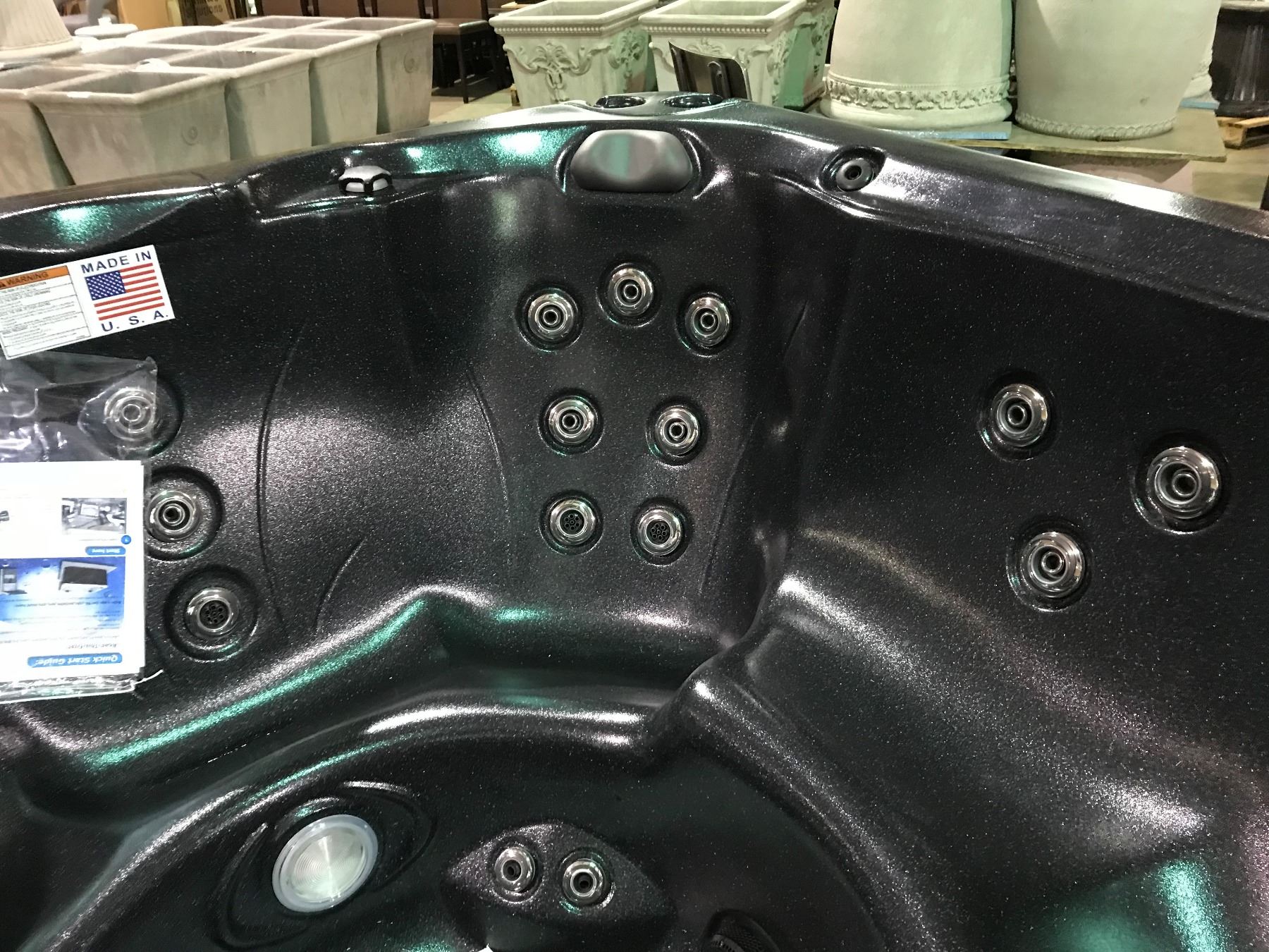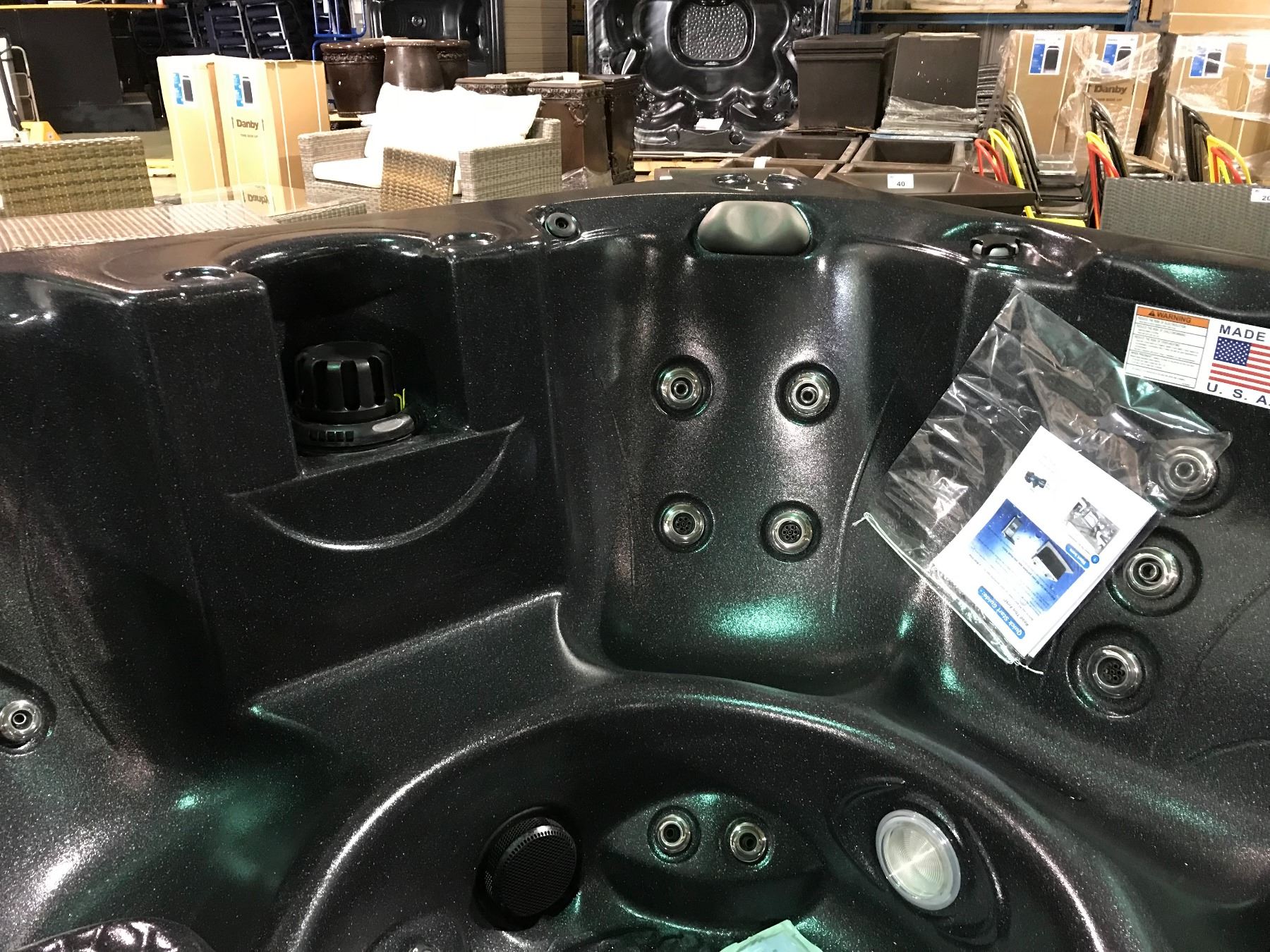 CAL SPAS TRANQUILITY 7' X 7' HOT TUB WITH 40 HALO SS JETS, 3 PILLOWS, 5.5 KW HEATER, 50 SQ FT FILTER, 6 BHP 2 SPD PUMP, 5 BHP PUMP, LED DUAL HYDRO STREAMERS, LED SPA LIGHT, THERMO-LAYER, ABS LINER, HYDROCLEAR OZONATOR, CALF MASSAGER, PHAUX PEBBLE FINISH, SURFACE SKIMMER AND MORE. SER. # 00521B