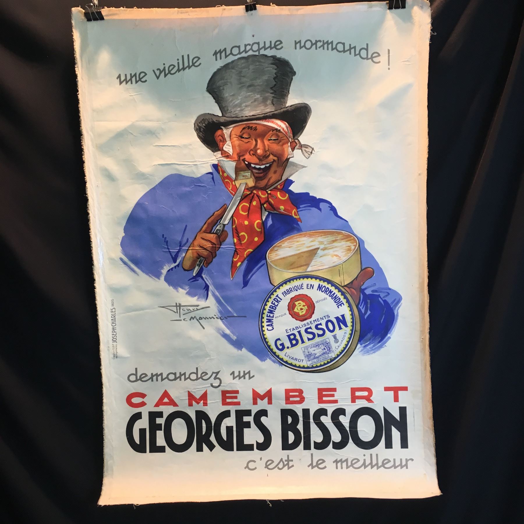 "CAMEMBERT GEORGES BISSON" LARGE UNFRAMED VINTAGE FRENCH ADVERTISING POSTER,