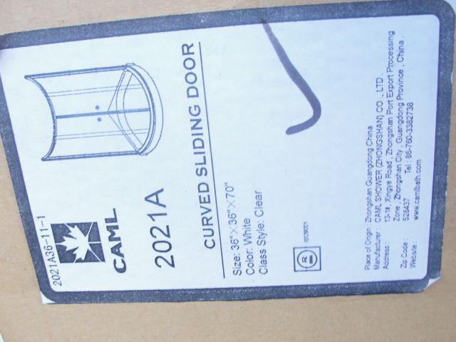 CAML CURVED SLIDING SHOWER DOOR WHITE GLASS SIZE 36``X36``X70``