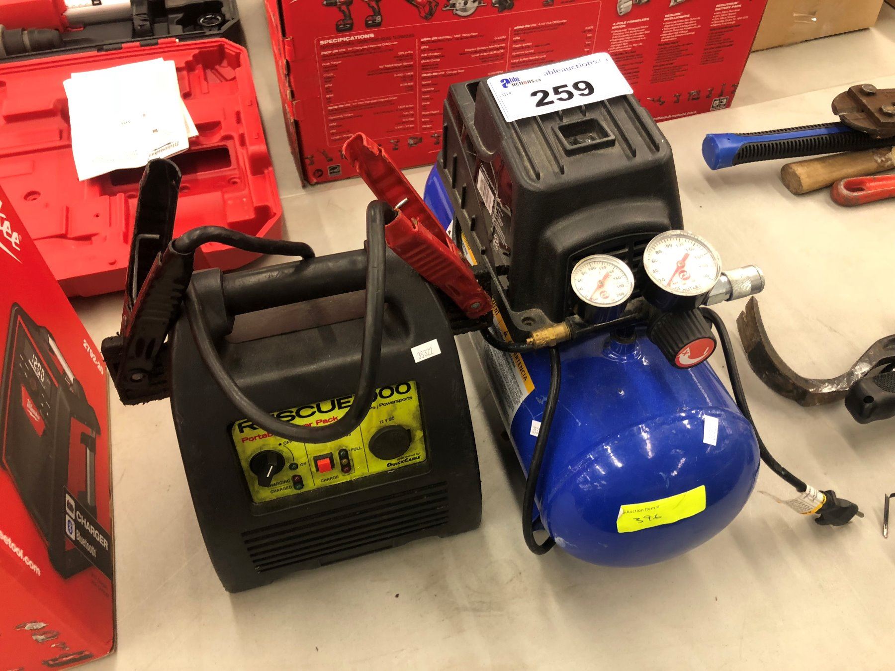 CAMPBELL HOUSFELD 100 PSI AIR COMPRESSOR AND RESCUE 900 PORTABLE POWER PACK