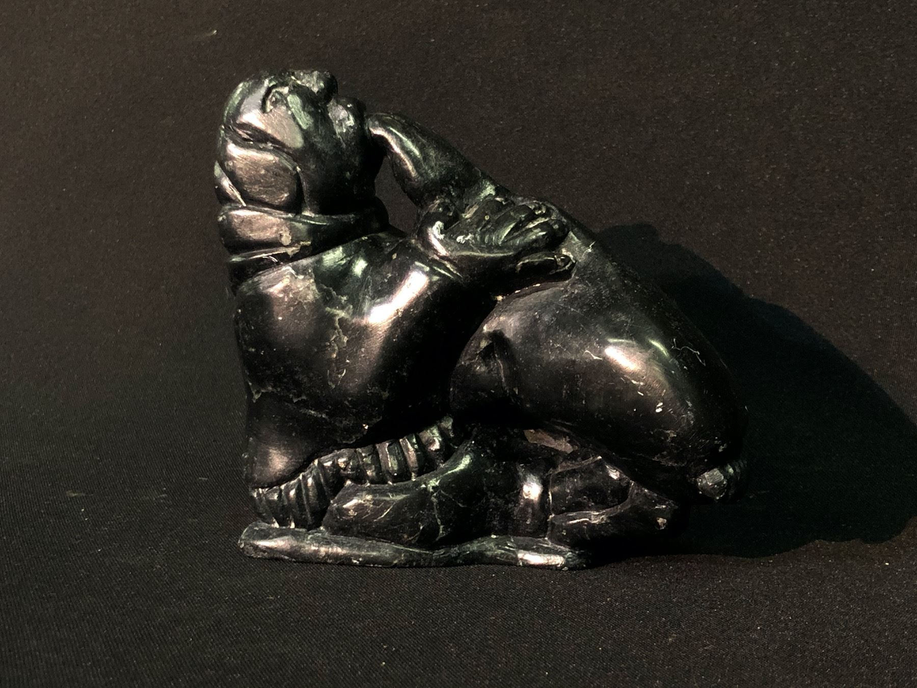 CANADIAN ESKIMO STONE CARVING, DATED 1997, SIGNED BY ARTIST ON BOTTOM, 4.5" TALL