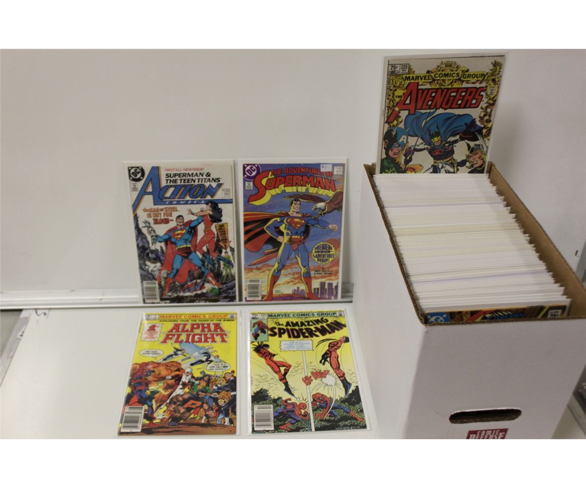 CANADIAN NEWSSTAND PRICE VARIANT SET.MIXED TITLES SHORT BOX. APPROX. 50-100 SCARCER THAN USA DIRECT PRINTING AVERAGE OF ONLY 2,500 COPIES EACH IN EXISTENCE, 90% BEING LOWER GRADE.  ACTION COMICS TO DAREDEVIL.  MIXED GRADES