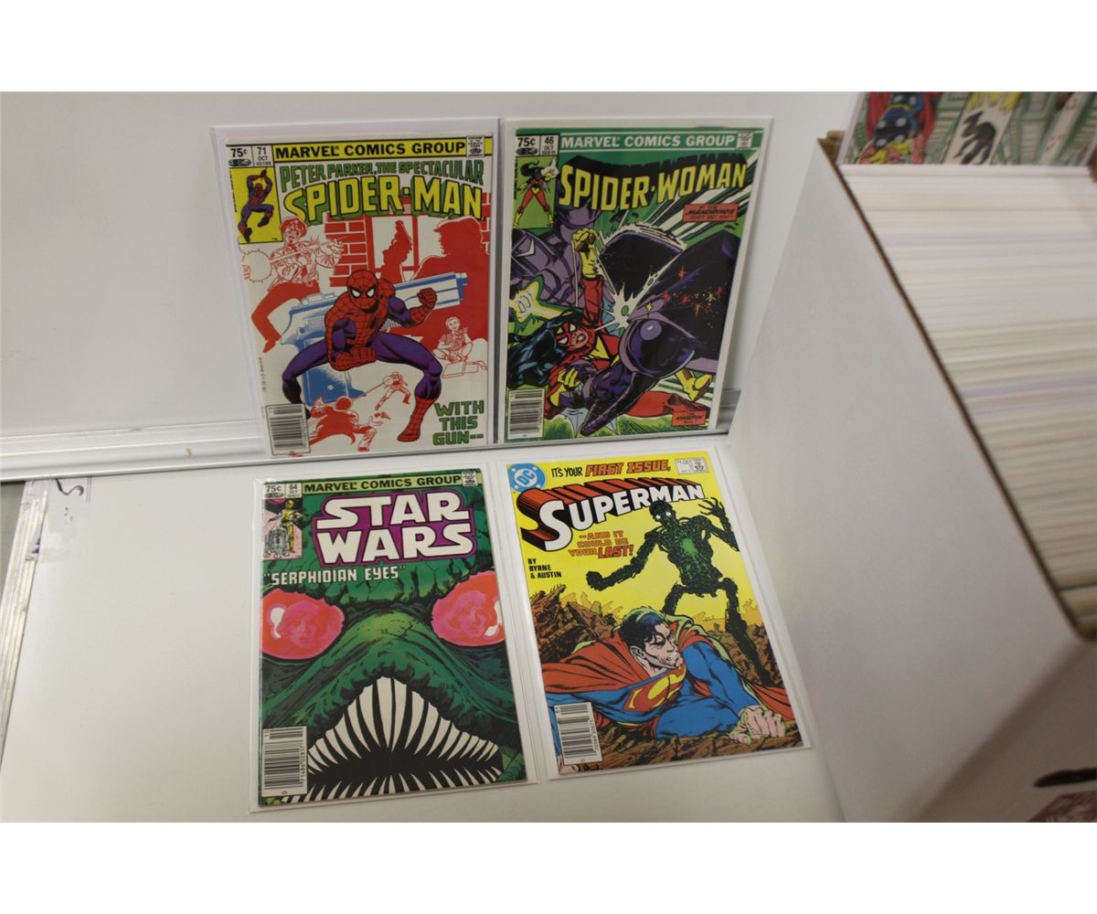 CANADIAN NEWSSTAND PRICE VARIANT SET.MIXED TITLES SHORT BOX. APPROX. 50-100 SCARCER THAN USA DIRECT PRINTING AVERAGE OF ONLY 2,500 COPIES EACH IN EXISTENCE, 90% BEING LOWER GRADE.  SPECTACULAR SPIDER-MAN TO  X-MEN.  MIXED GRADES.