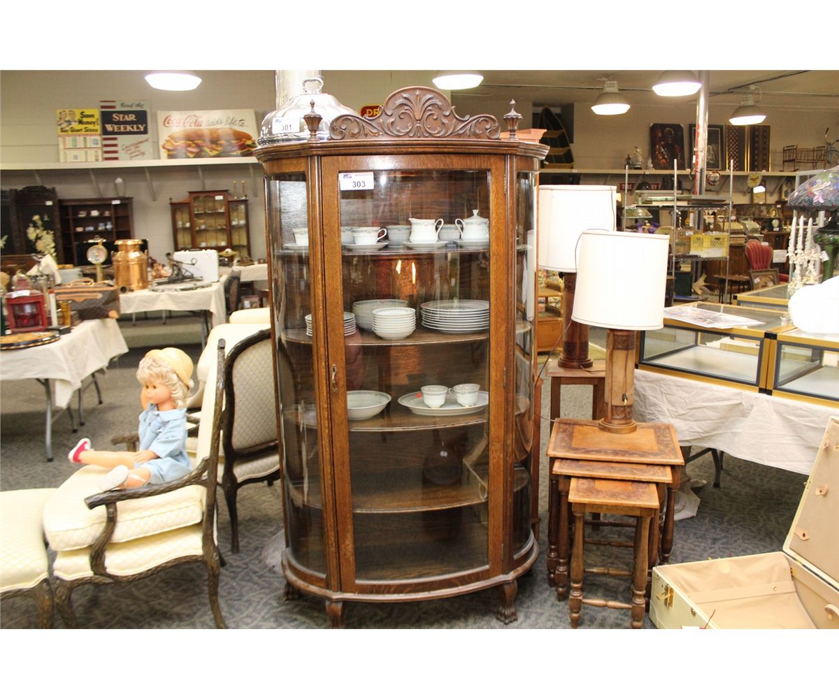 CANADIAN OAK, TRIPLE CURVE, CLAW FOOT DISPLAY CABINET