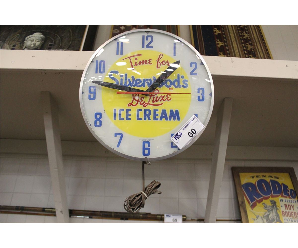 CANADIAN SILVERWOOD'S ICE CREAM, LIGHT UP CLOCK, WORKING