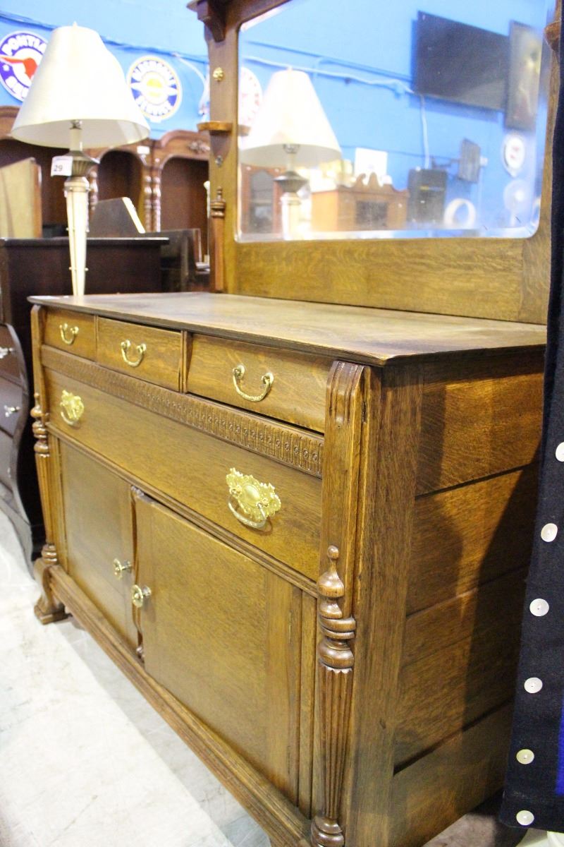 CANADIANA OAK SIDEBOARD WITH LARGE BEVELED MIRROR