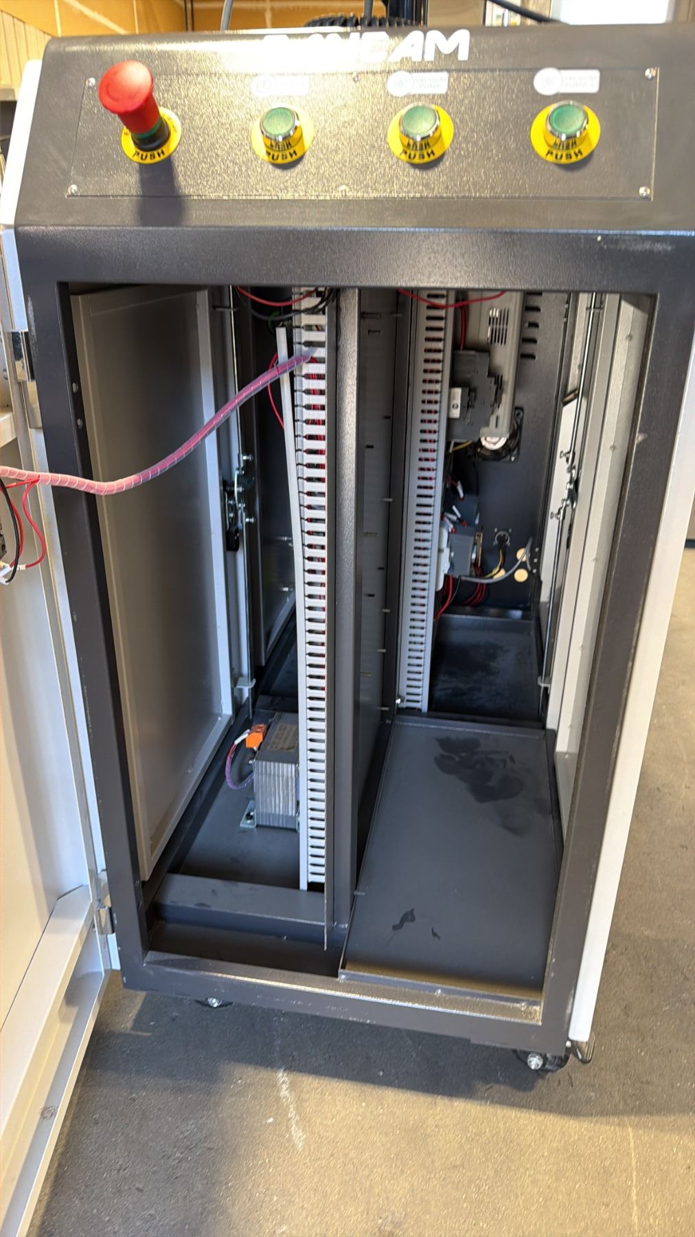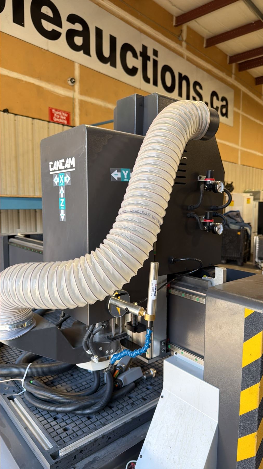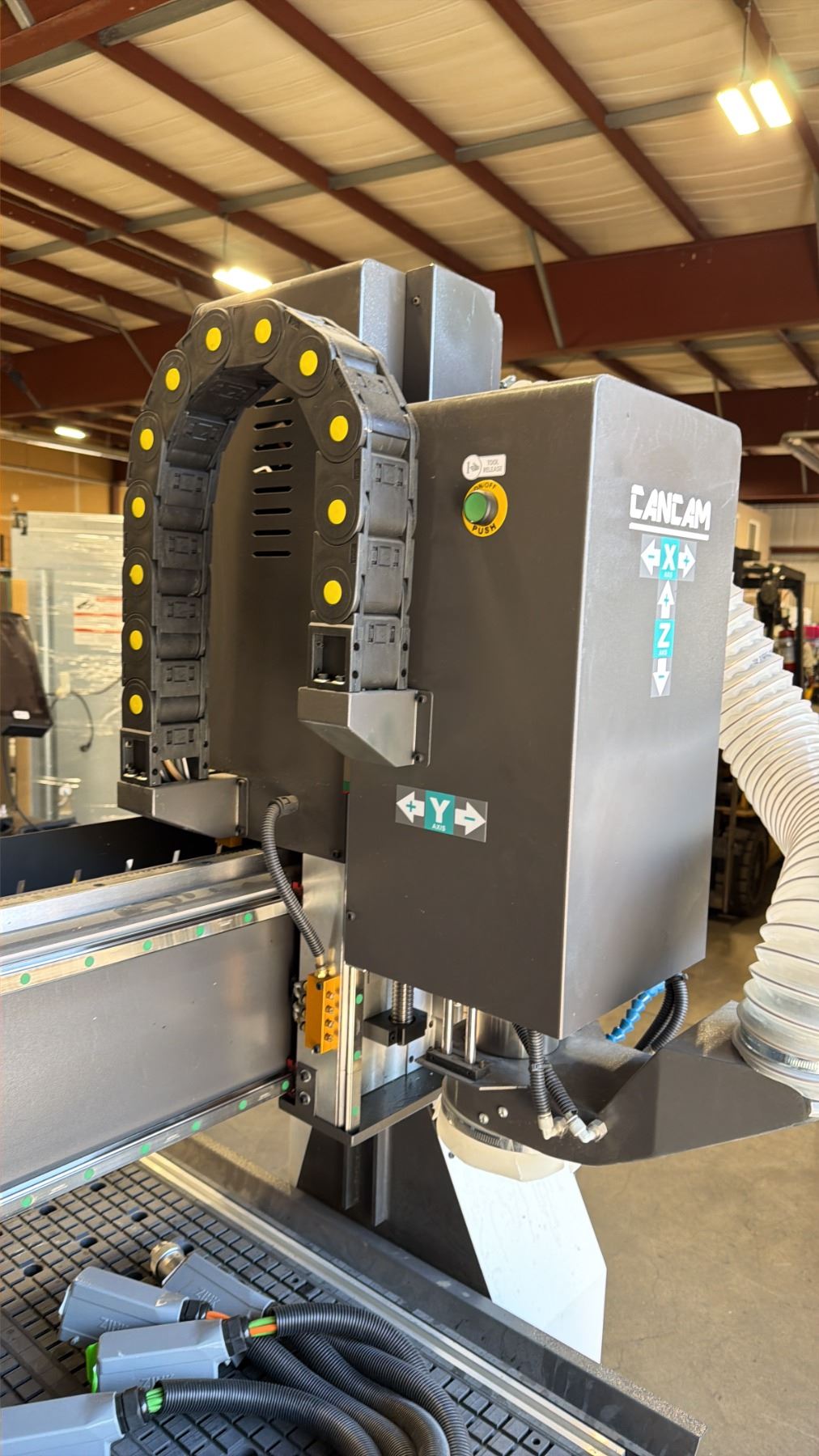 CANCAM C2-48ATC CNC MACHINE WITH MASSO G3 TOUCH 15" INDUSTRIAL CAPACITIVE TOUCHSCREEN CONTROL & BLACK BOX HURRICANE INDUSTRIAL ELECTRIC CNC VACUUM SYSTEM WITH HOSE MACHINE WEIGHS APPROX 3,800 LBS MACHINE MEASURES APPROX 135" X 90" X 80"H