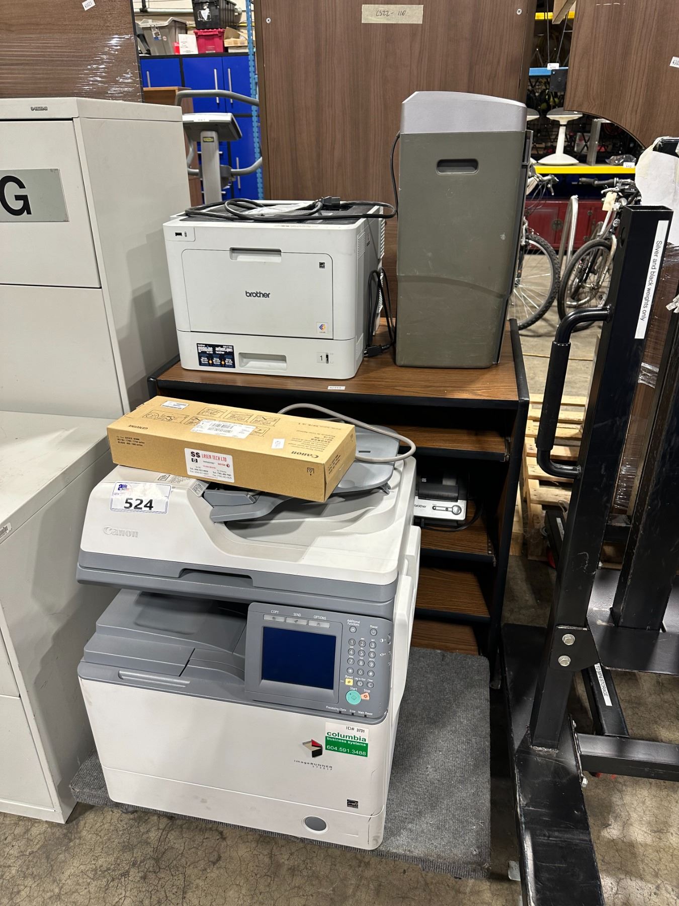 CANON IMAGERUNNER 1730IF PRINTER / COPIER WITH TONER, BROTHER HL-L8360CDW PRINTER, BROTHER QL-500 PRINTER FELLOWS PS70-2 SHREDDER & MOBILE PRINTER STAND