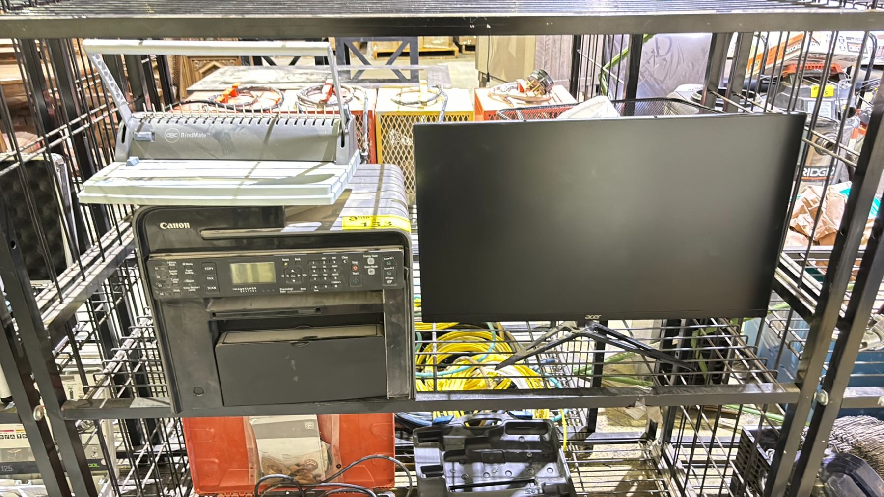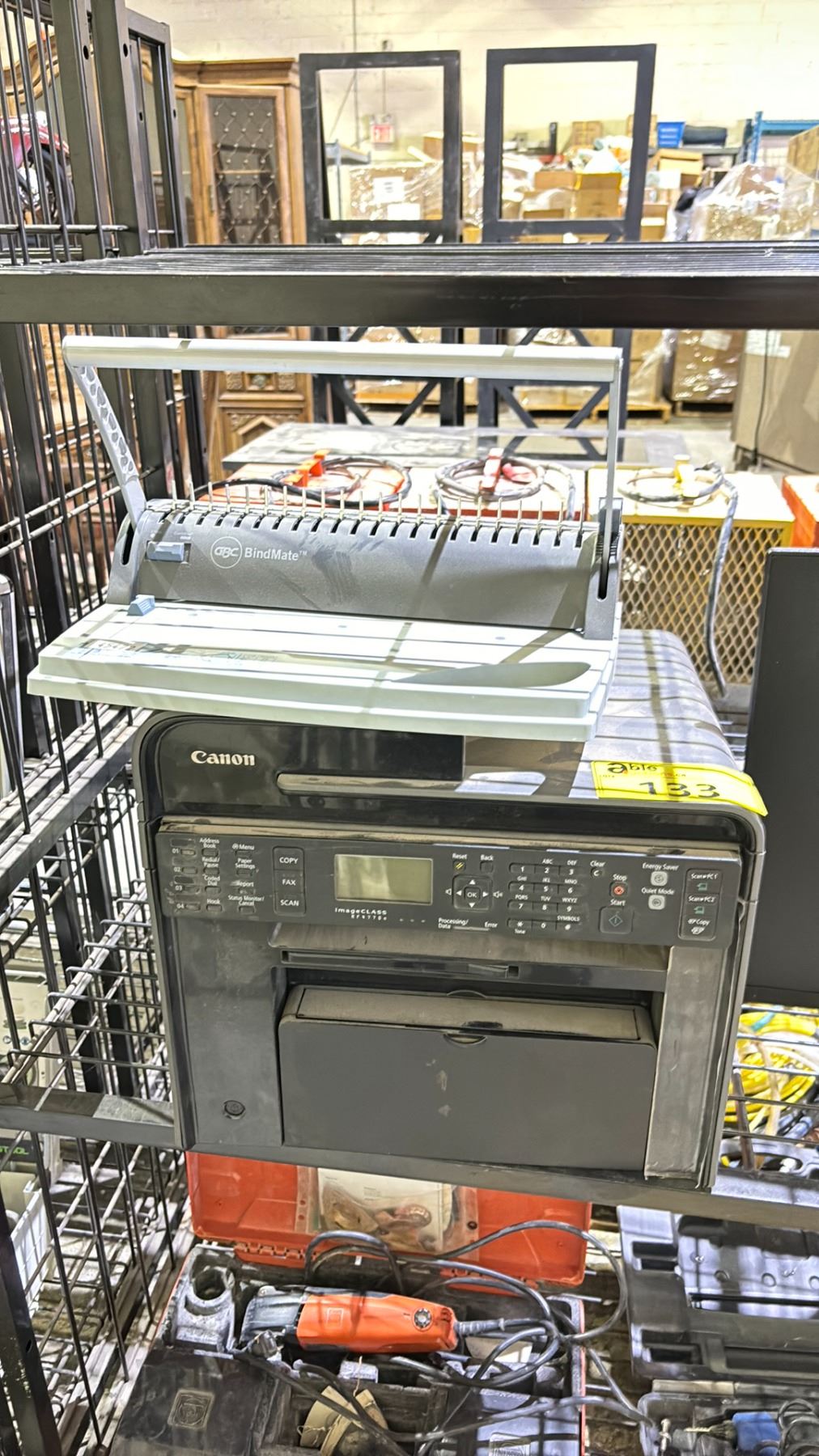 CANON PRINTER, BINDMATE, ACER COMPUTER MONITOR AND WASTE BIN