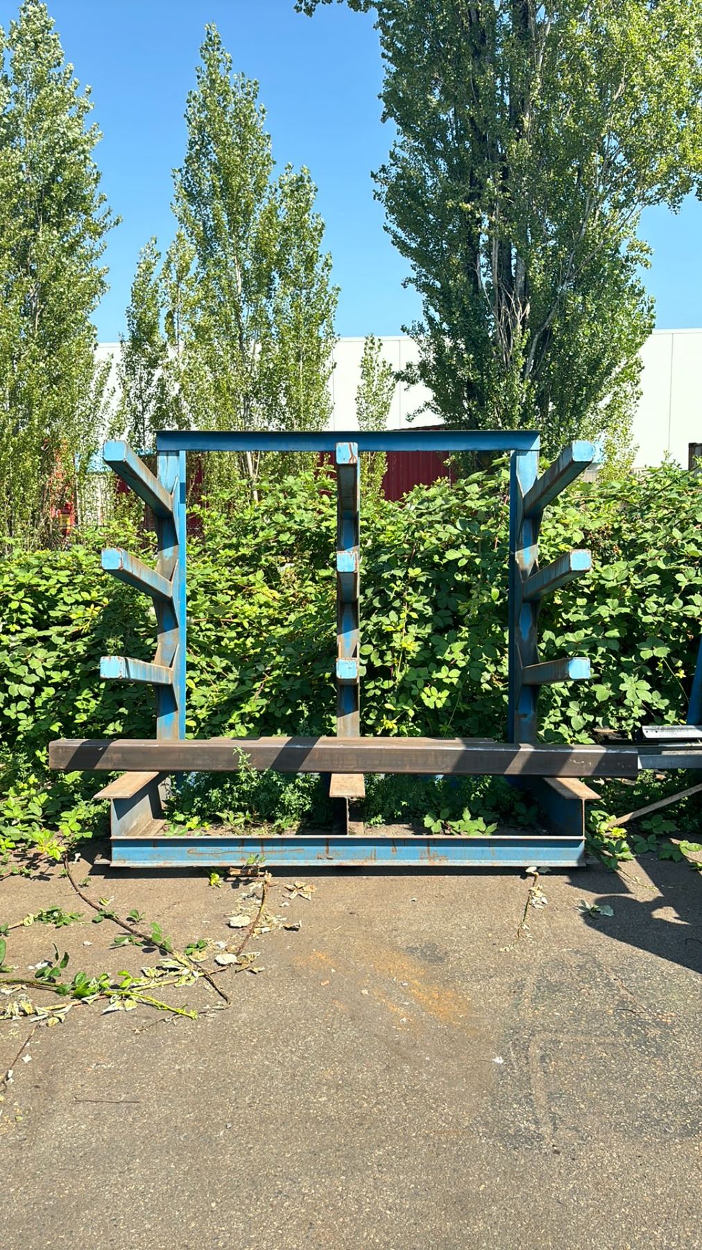 CANTILEVER SINGLE SIDED MATERIAL STORAGE RACK - APPROX. 7.5'W X 5'D X 7.5'H WITH TWO LENGTHS OF SQUARE STEEL MATERIAL