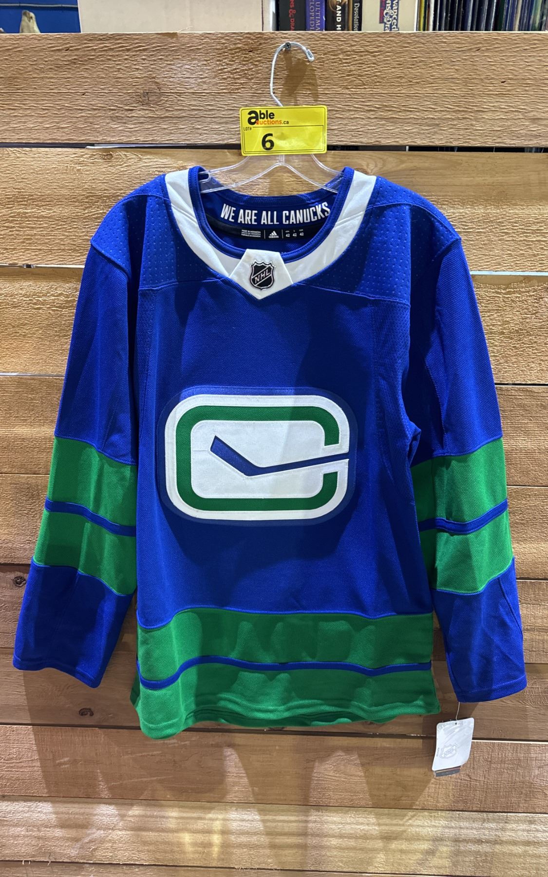 CANUCKS HOME ADIDAS JERSEY ORCA SIZE 42 RETAIL $200