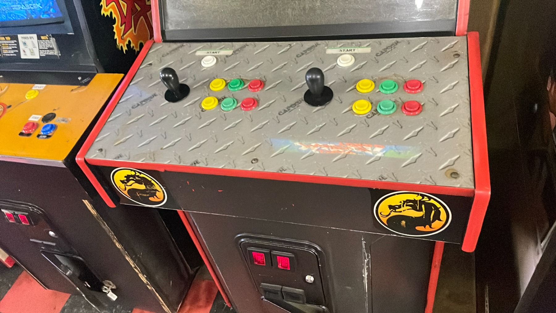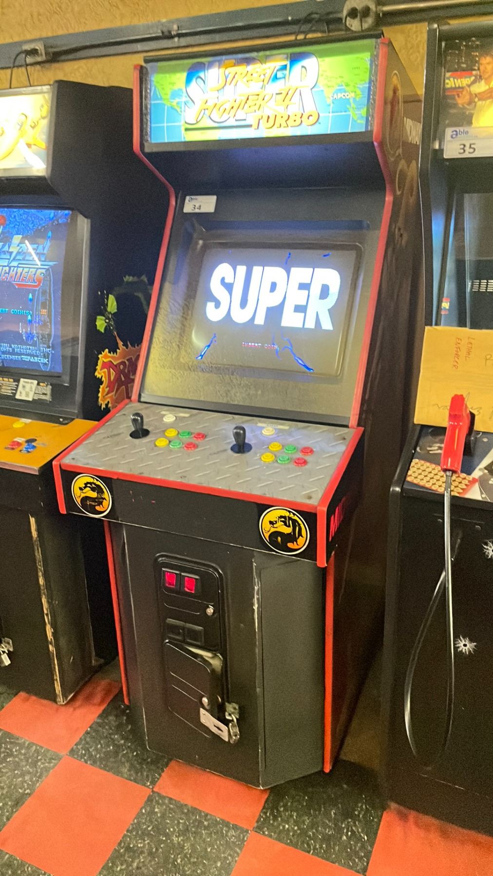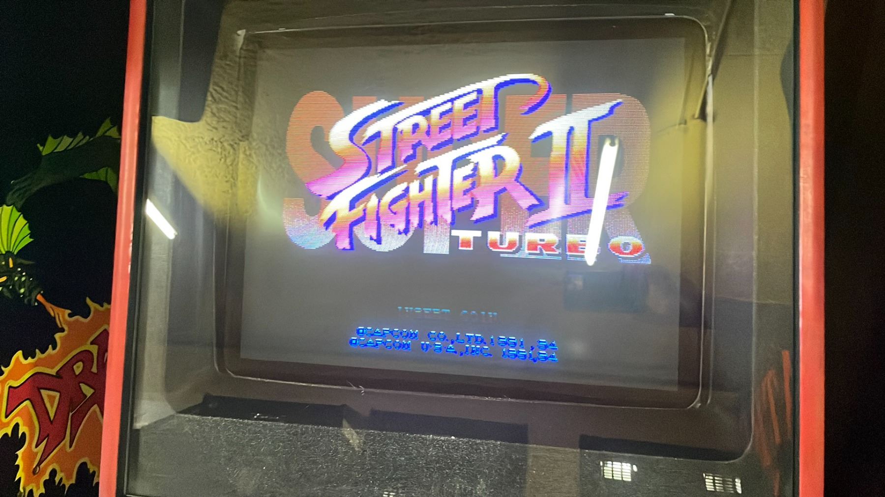 CAPCOM STREET FIGHTER II TURBO 2 PERSON COIN OPERATED UPRIGHT ARCADE GAME IN MIDWAY MORTAL KOMBAT CABINET