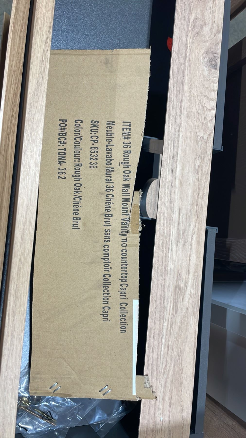 CAPRI COLLECTION MODEL CP-36 MURAL 36"W X 20"D ROUGH OAK 2 DRAWER WALL MOUNT BATHROOM VANITY