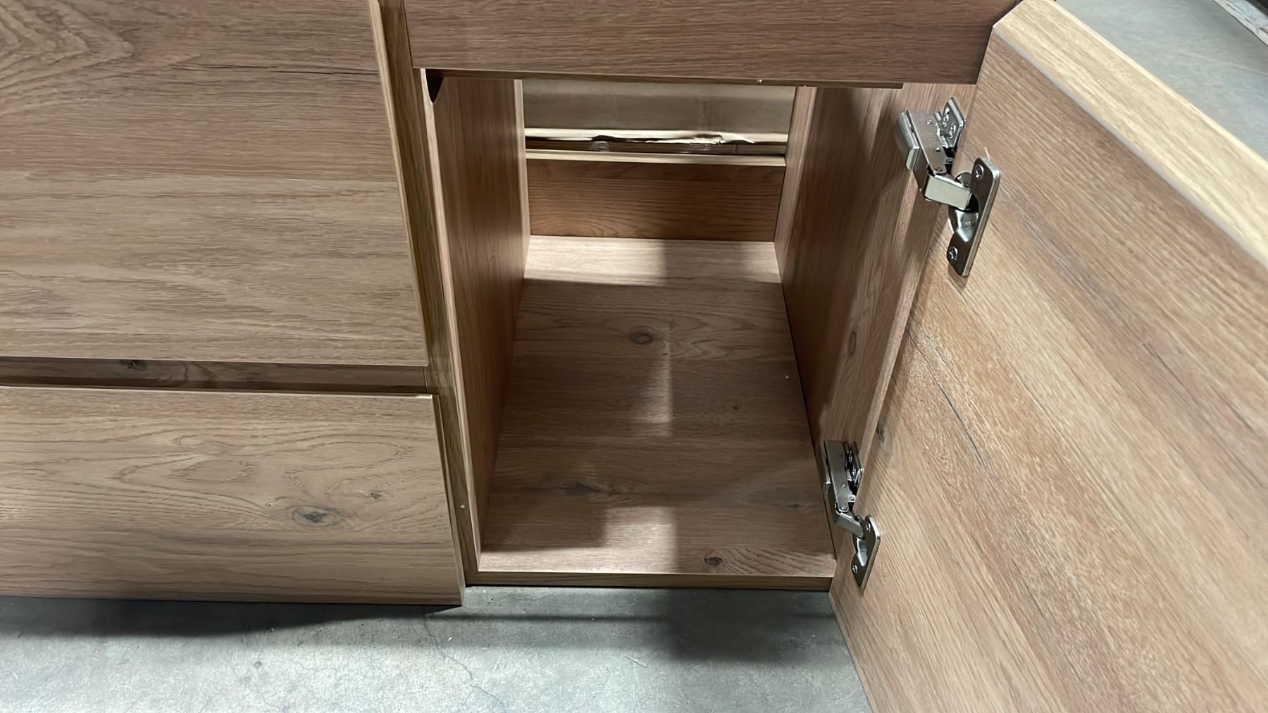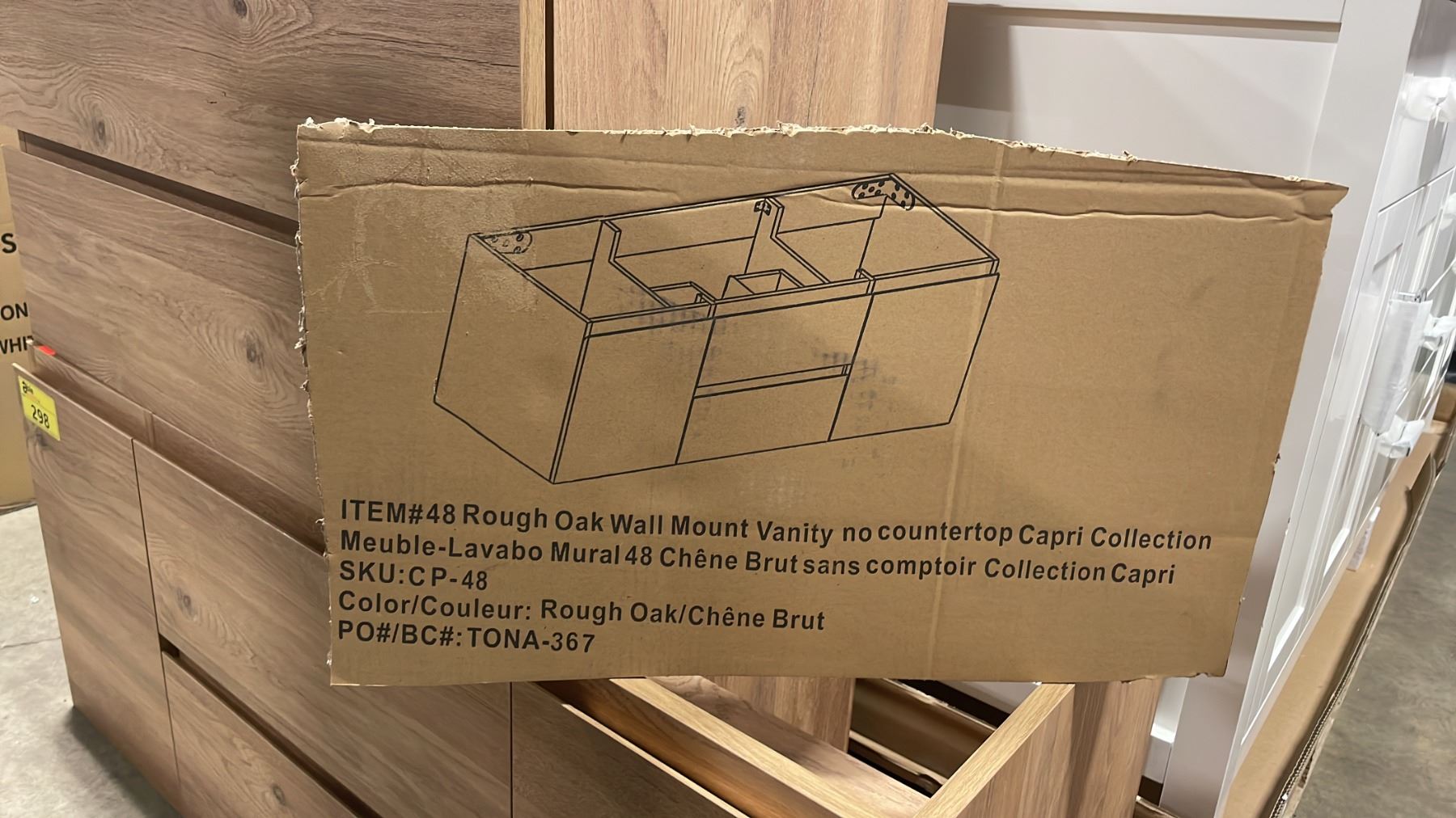 CAPRI COLLECTION MODEL CP-48 MURAL 48"W X 20"D ROUGH OAK 2 DRAWER 2 DOOR WALL MOUNT BATHROOM VANITY