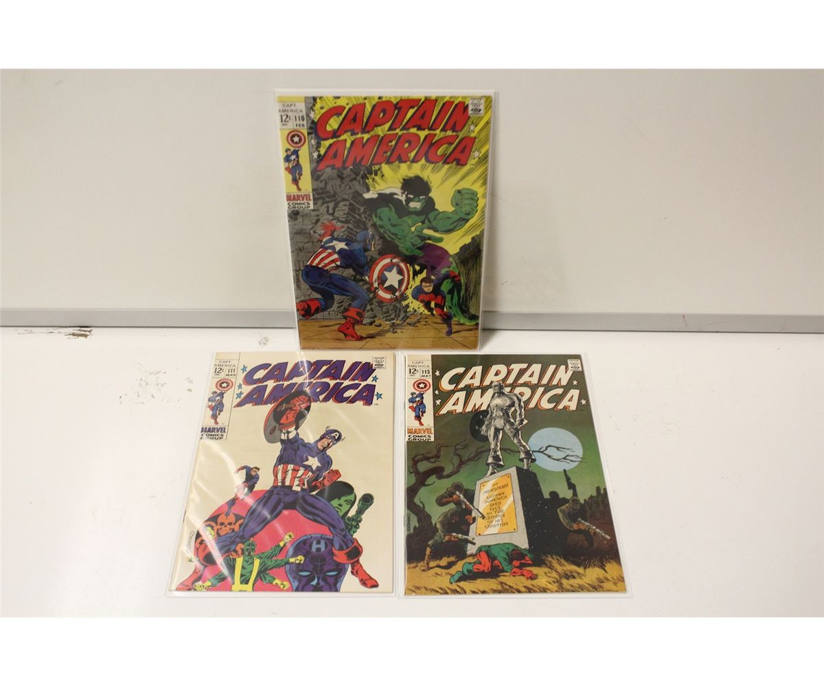 CAPTAIN AMERICA #110, 111, & 113 (1969) CLASSIC STERANKO COVER/ART ISSUES. HIGH MID TO HIGHER GRADE, GLOSSY, TIGHT & SUPPLE. VERY NICE EXAMPLES.