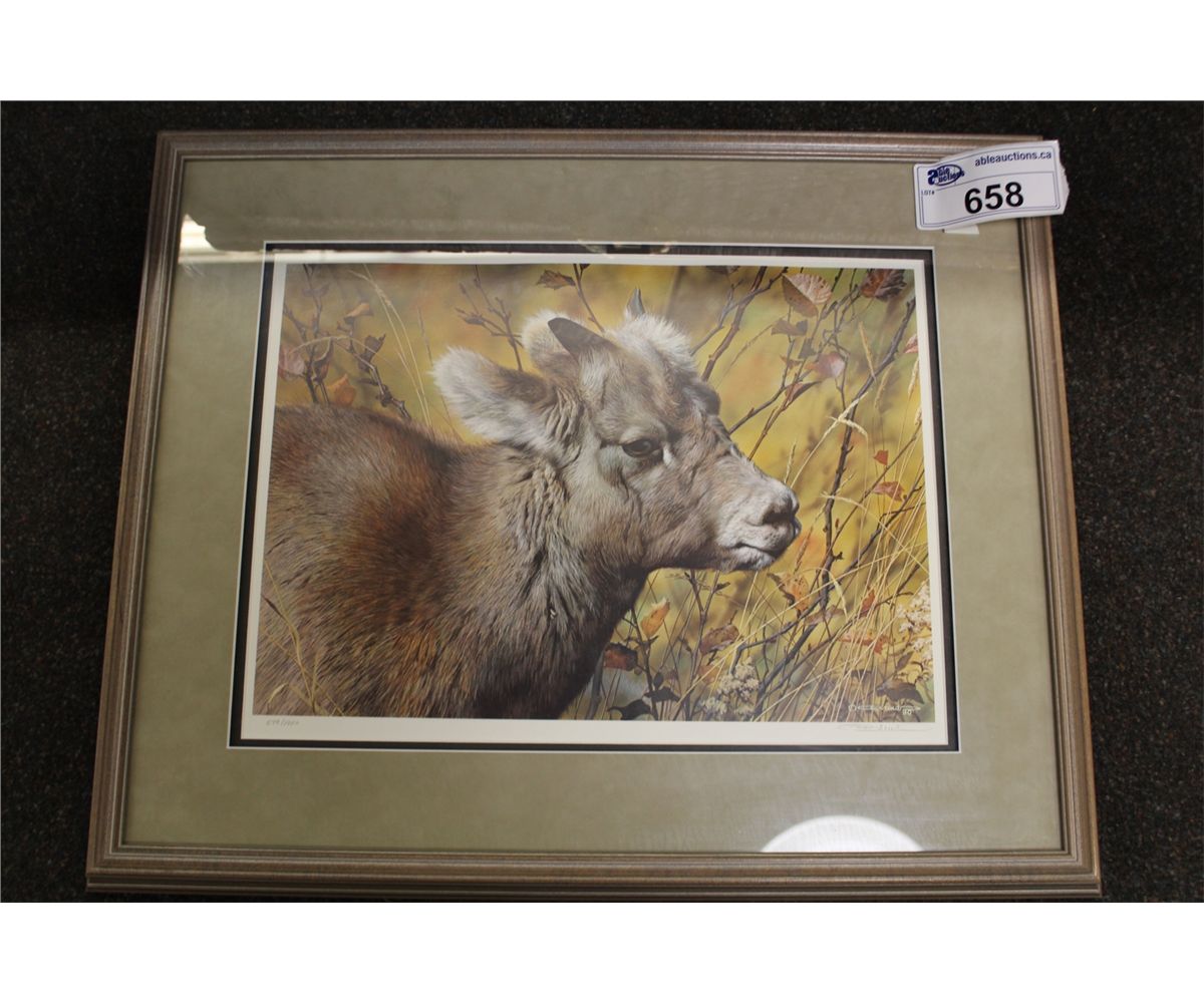 CARL BRENDERS "GOAT" LIMITED EDITION FRAMED PRINT, SIGNED LOWER RIGHT 17" X 12" 579/1950 NET PROCEEDS FROM THE SALE OF THIS ARTWORK WILL BE DONATED TO THE SQUAMISH FOOD BANK