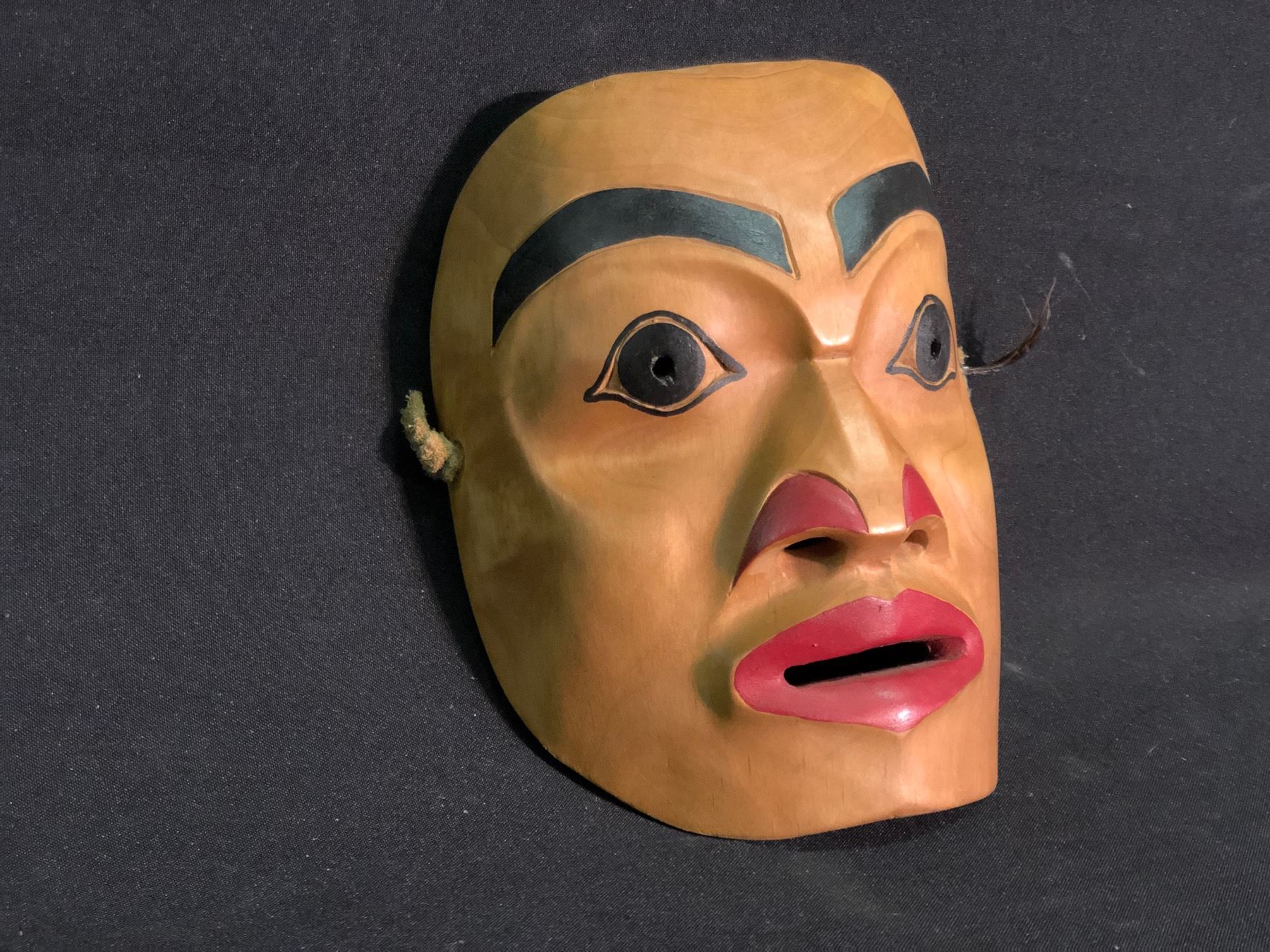 CARL LAROCK, HAND CARVED AND PAINTED "PORTRAIT" MASK, DATED MARCH 1986, 7.5'' T X 6'' W, SIGNED BY ARTIST ON BACK