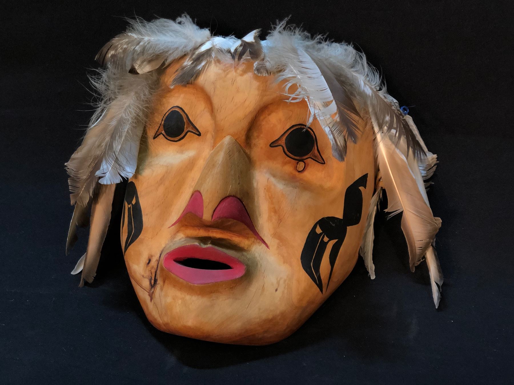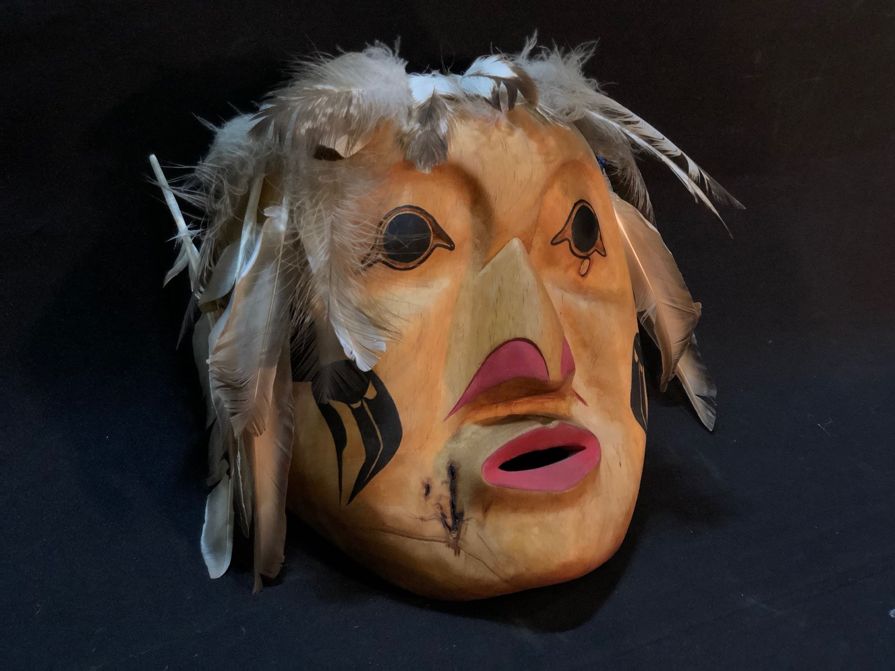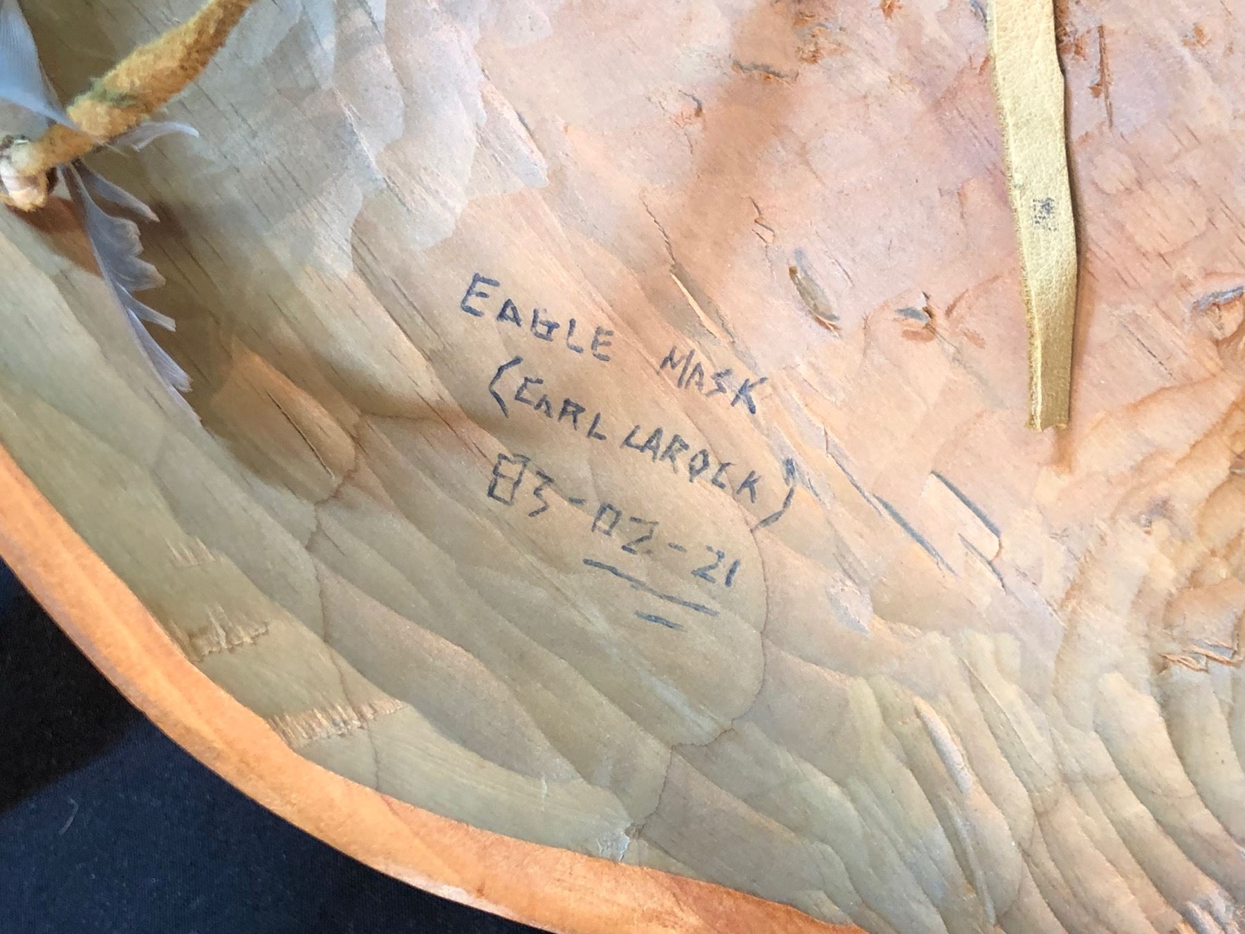 CARL LAROLK HAND CRAFTED EAGLE MASK, WITH FEATHER ACCENTS, APPROX. 10'' TALL