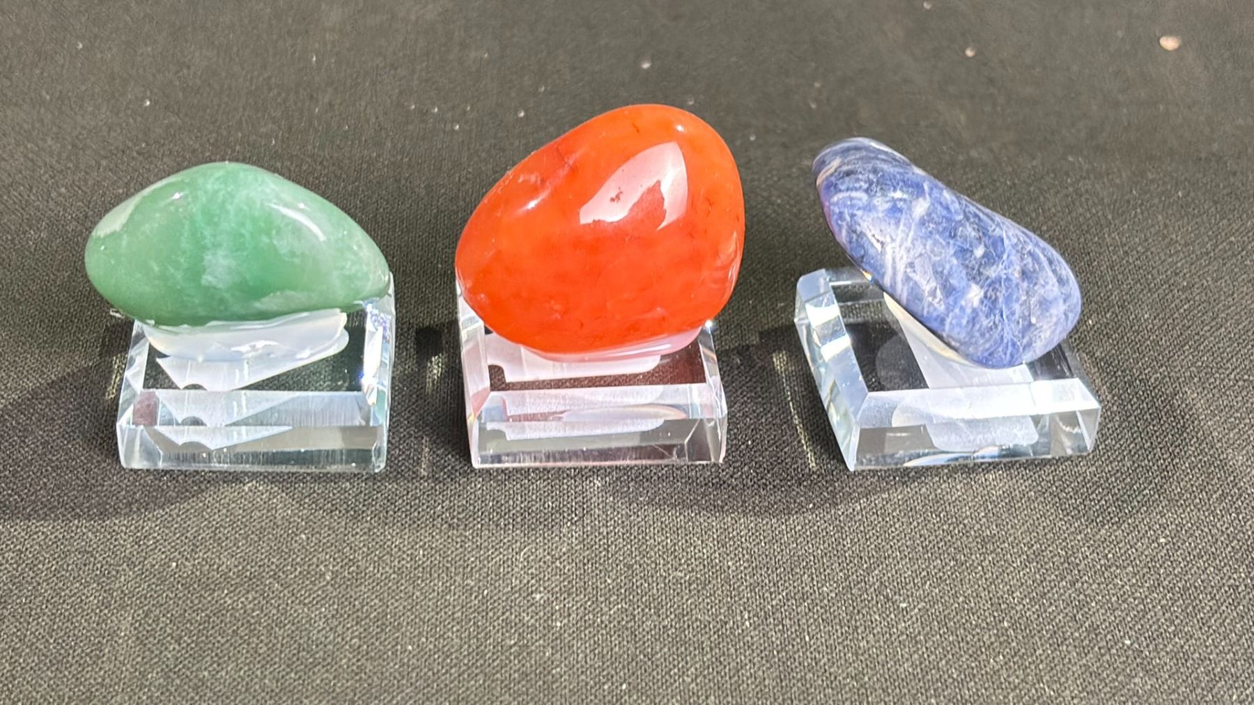 CARNELIAN STONE RETAILS $280, SODALITE STONE RETAILS $280 & GREEN QUARTZ RETAILS $280