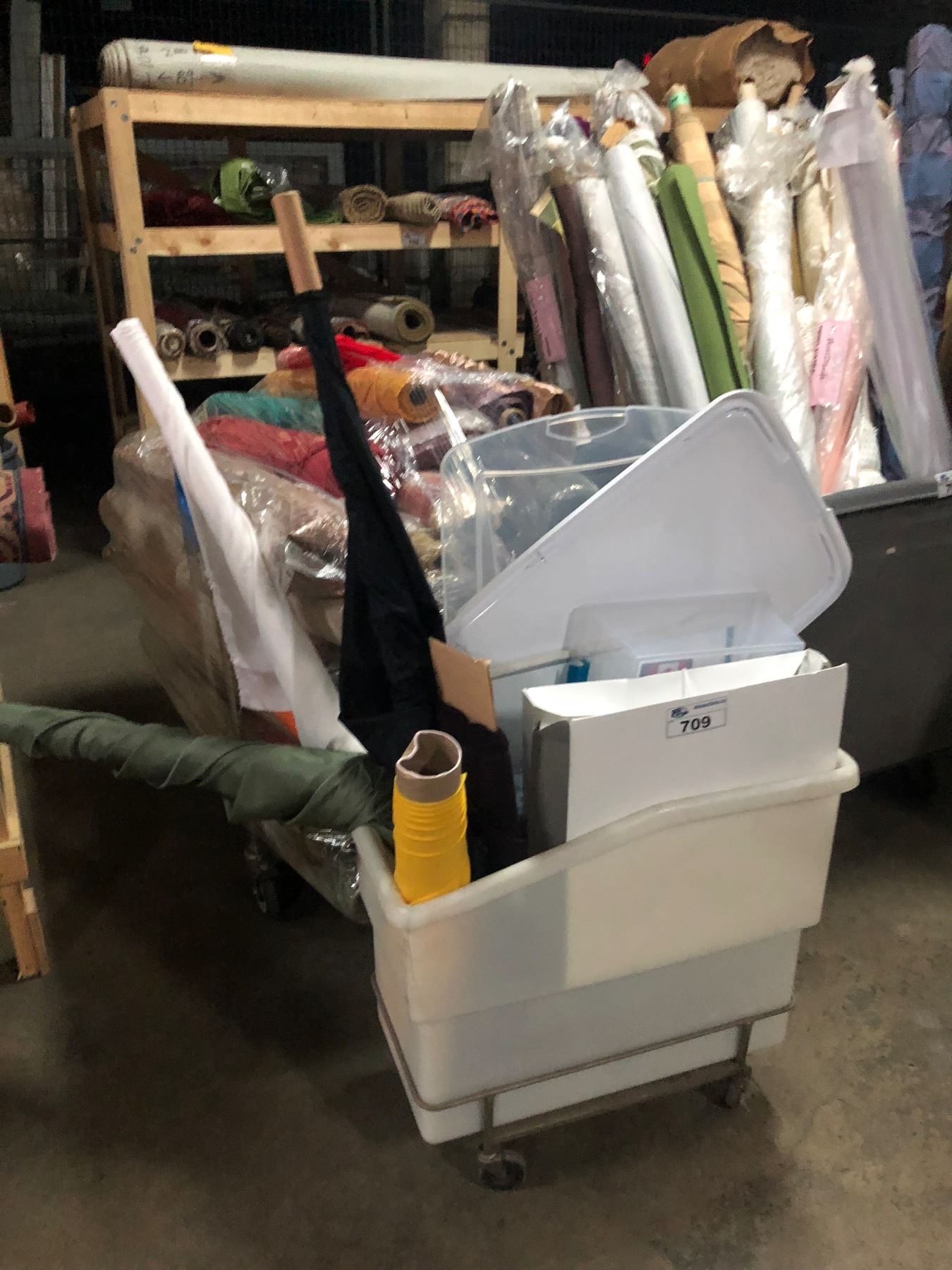 CART & BIN WITH ASSORTED FABRIC STOCK - CART NOT INCLUDED