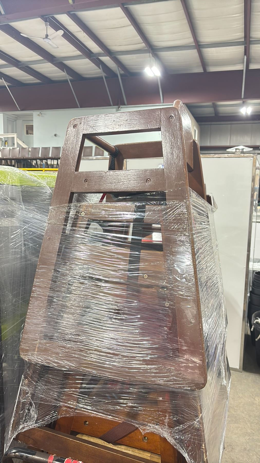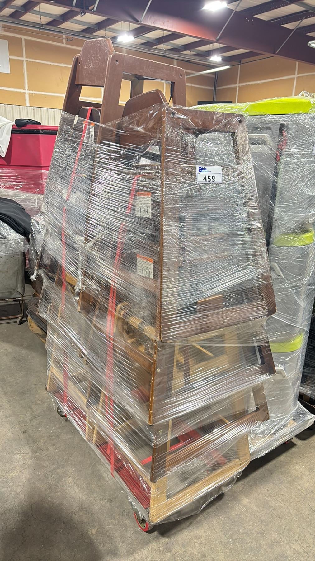 CART OF 9 WOODEN COMMERCIAL CHILDRENS HIGH CHAIRS *CART INCLUDED*