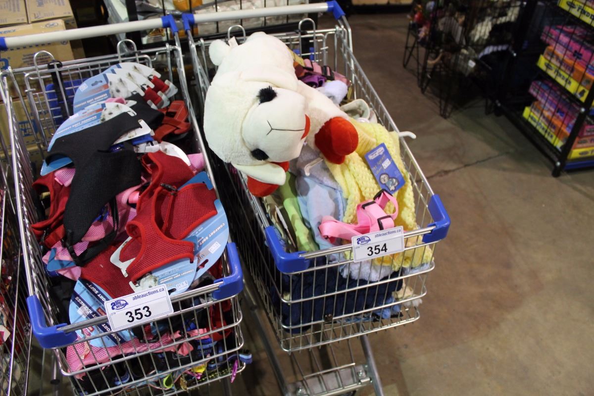 CART OF ASSORTED DOG CLOTHING & LAMB CHOP TOY