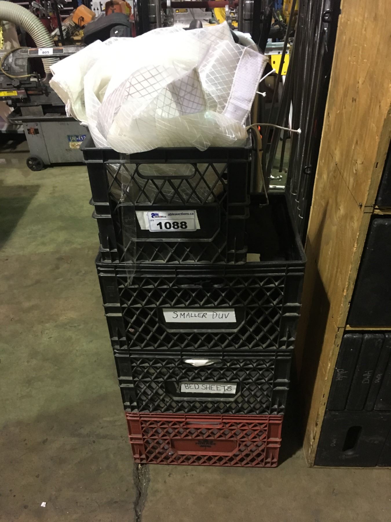 CART OF BED SHEETS, PLASTIC SHEETS & DRAPERY