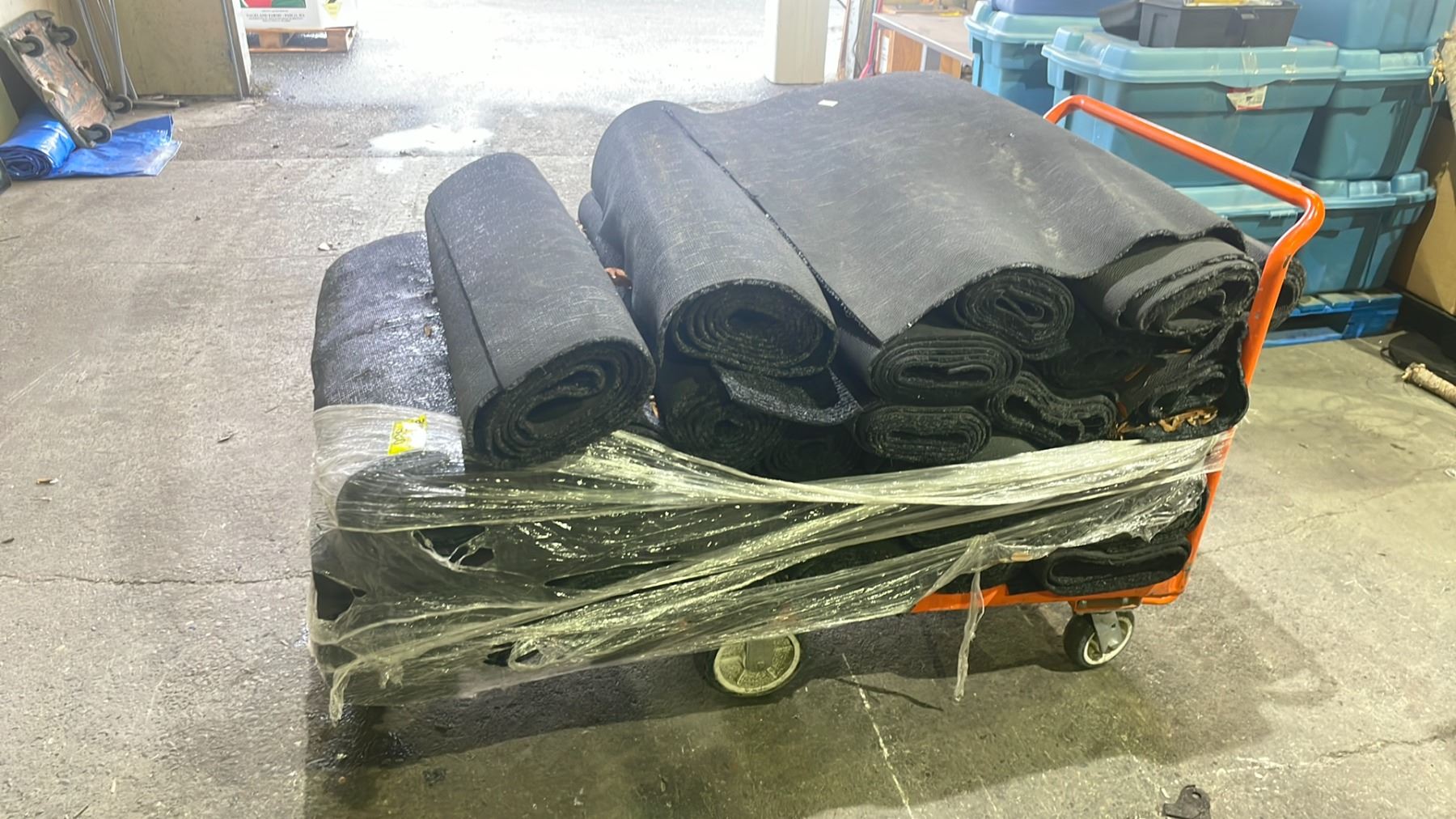 CART OF DARK GREY/BLACK HALLWAY RUNNER CARPETS *CART NOT INCLUDED*