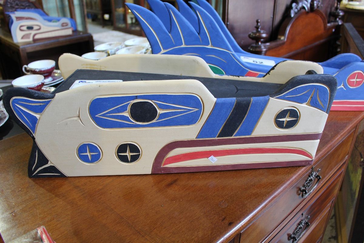 CARVED AND PAINTED FIRST NATIONS WOLF MASK, BY LAURENCE ANDREW