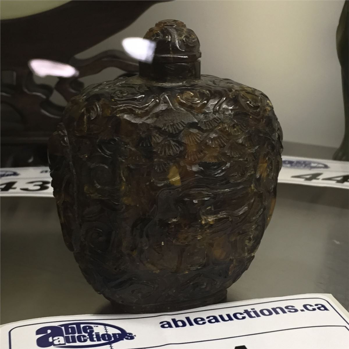 CARVED ASIAN AMBER SNUFF BOTTLE