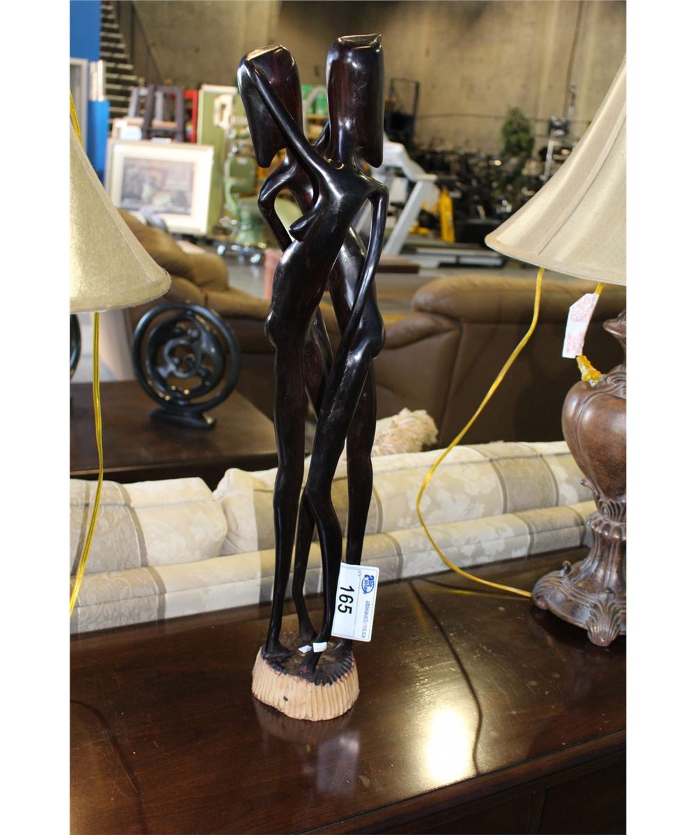 CARVED EBONY MAN AND WOMAN SCULPTURE