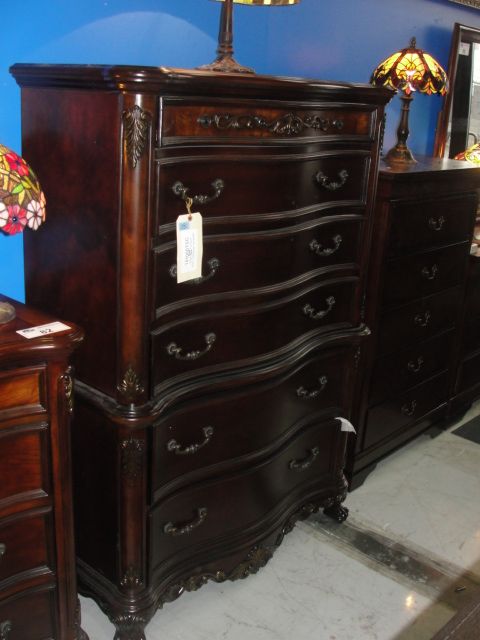 CARVED FOOT SERPENTINE FRONT 2PC BEDROOM DRESSER SET; DRESSER WITH MIRROR AND HIGHBOY DRESSER