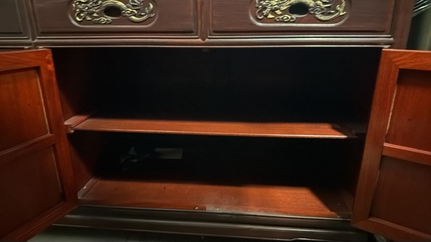 CARVED HARDWOOD ASIAN CREDENZA WITH DRAGON MOTIF