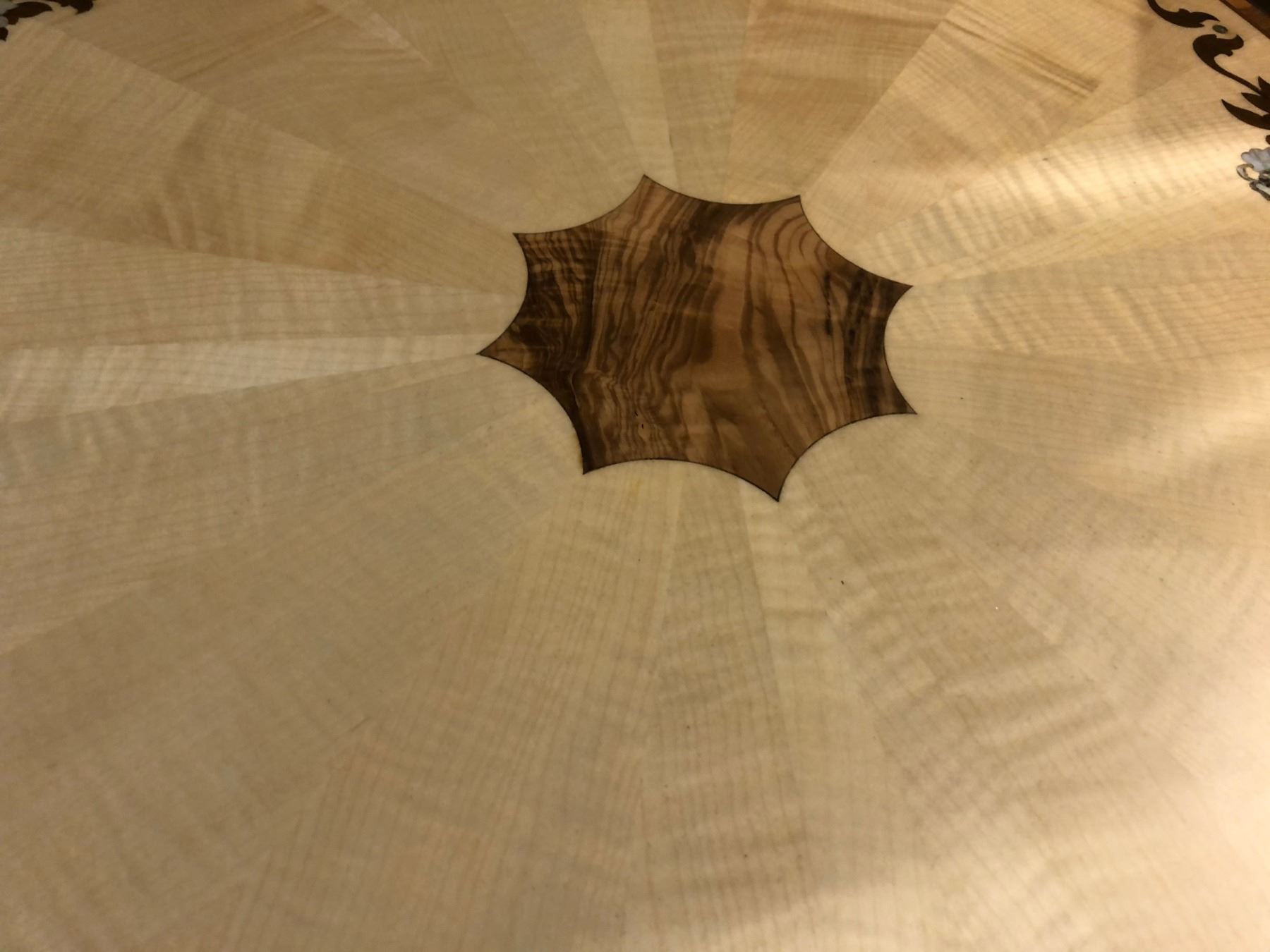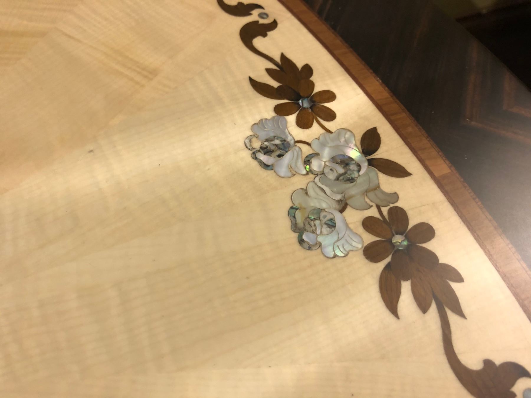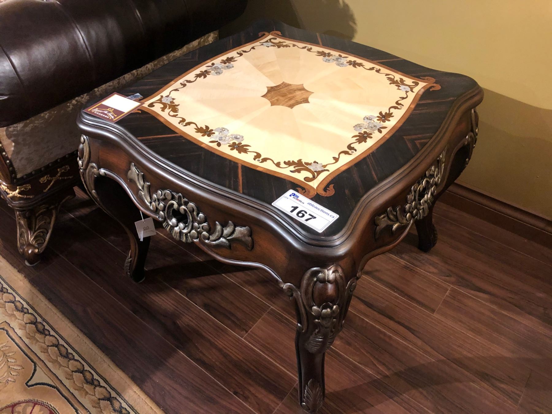 CARVED / INLAYED WOODEN SIDE TABLE. RETAIL $1,200.00