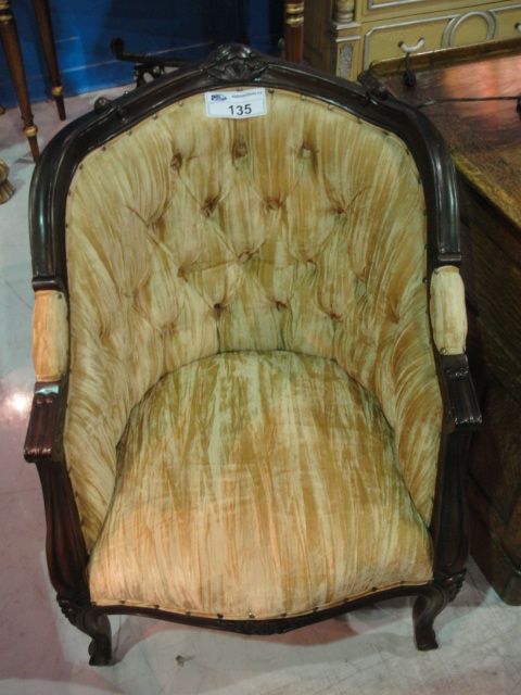 CARVED MAHOGANY WITH GOLD VELVET UPHOLSTERRY ACCENT CHAIR