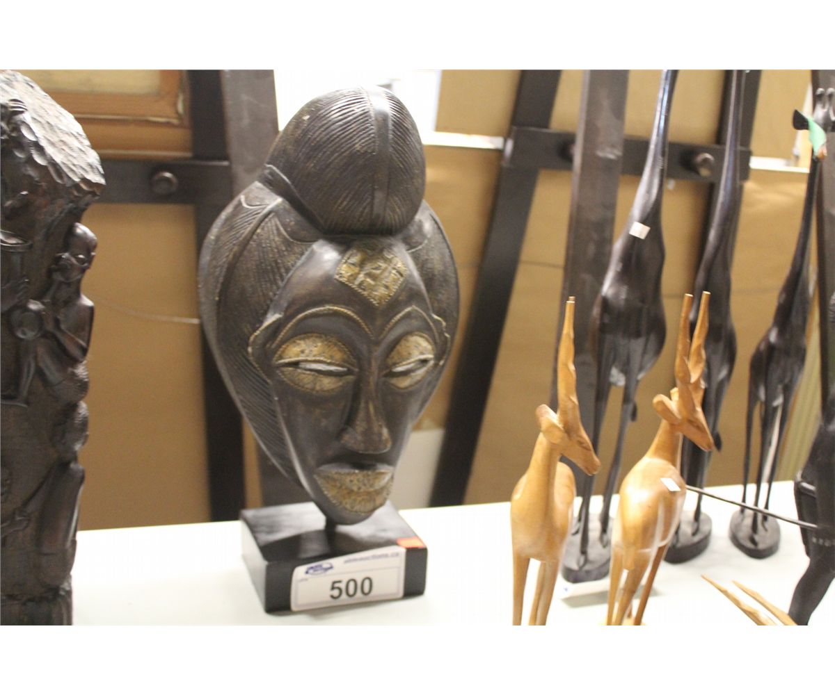 CARVED MASK ON PEDESTAL 16" HIGH