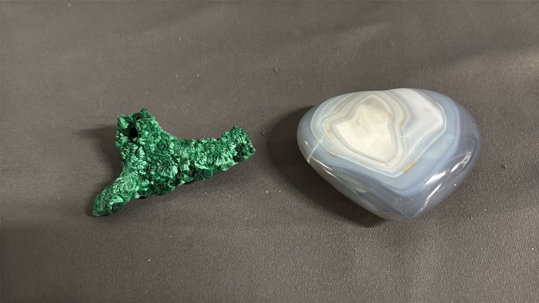 CARVED ORCA AGATE HEART & AMETHYST CLUSTER HEART